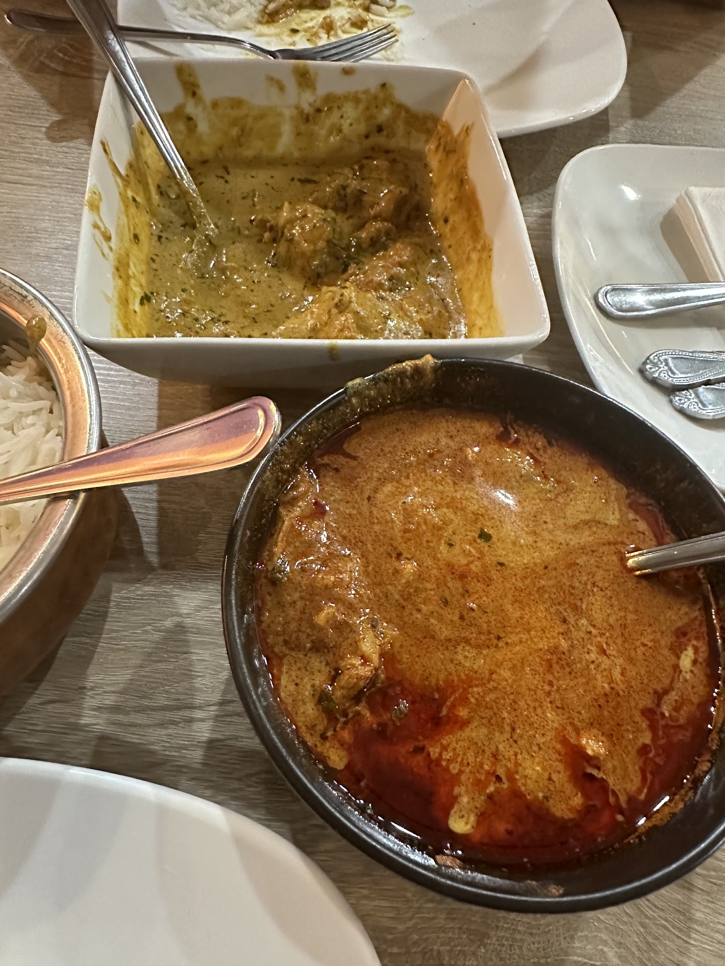 I will say the server was very nice, she was by herself serving and new. She was accommodating and saw my concern. The mango lassi and garlic naan were good. We werenât a big fan of the mango chutney and the gulab jamun dessert.