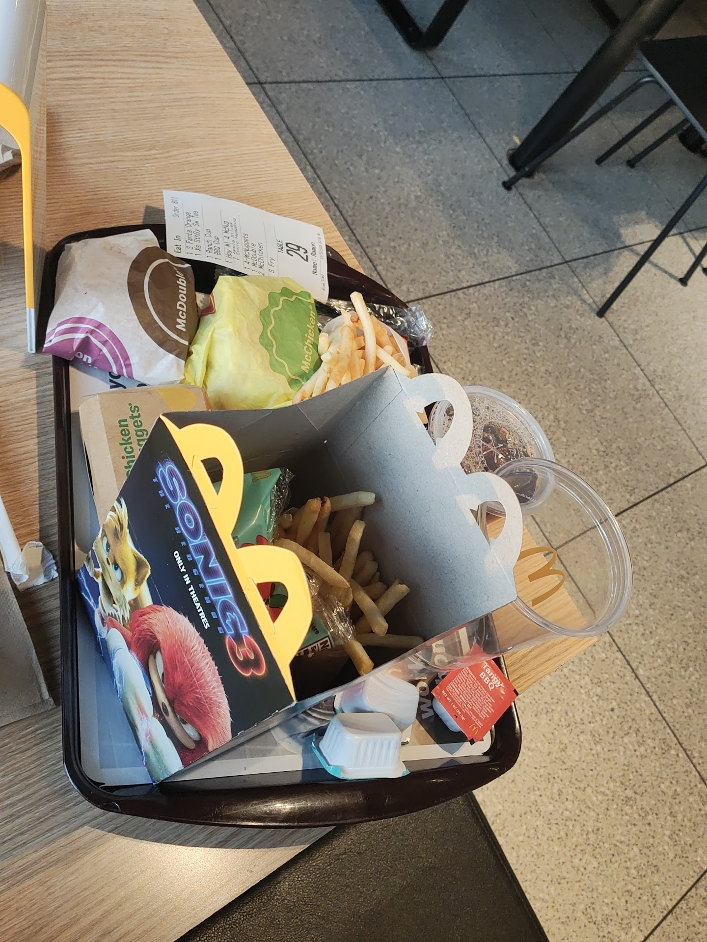 around 2:45pm and ask for a #6 meal which is 10 pcs nuggets with sweet and sour and since I do not drink soda I ask if I can switch the soda for any type of juice the offer me fruit punch saying this way (((well I have fruit punch )))said no right away ...the hold it ... like orange juice need to be saved for the am breakfast only type thing itâs a shame ... well I said thatâs the only thing you have and then she said oh we also have orange juice and I answered well yes I take that thank you ... she answers you welcome in and slow lazy disrespectful way more shame on it .!! Very sad from my fovorite one ... so I get my stuff I see the charge me 70 Cents more to switch the soda for a orange juice .. and guess what i had to go back they gave me half water half juice to stretch it out ... i went back claim the watery juice she say right away well we donât have any more of that ... and I said really ?!!.. then another girl come with the juice right there I was like wow first you give me half water half juice and then lie to me saying you donât have anymore orange juice wow really ... I took the juice and told her you donât deserve to be working here .... and I left ..SHAME FOR THE CLOWN I wouldnât never buy at this place or any mcd anymore also salty fries like super salty...
