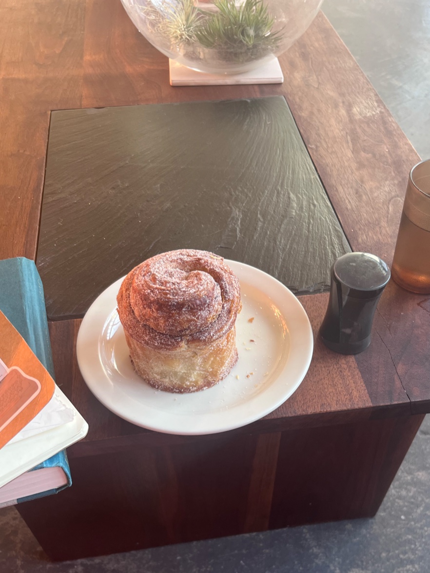 Read moreI was the first person to come in this morning. The staff were all kind and helpful. The Rwanda pour over was balanced, silky and sweet with nice fruity and subtly floral notes. The cinnamon scroll was flaky and soft, a fun treat to enjoy. The bagel had cream cheese which was easy to spread, making it a delicious breakfast.
