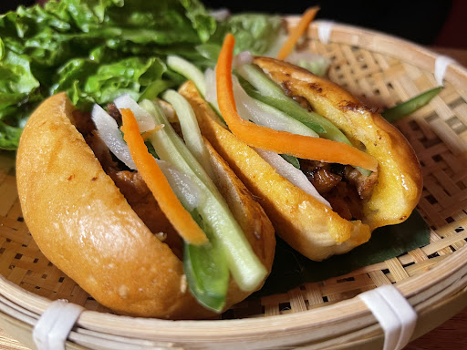 as for the bahn mi, there is a CONVENIENCE STORE near me that makes better ones. the bread here is pretty crap, not a good bahn mi baguette, pork was dry af and no flavor, and they give you 3 of them , about 3-4 inches each. the bread to meat ratio is like 75% bread. absolutely not worth $15 for the āskinny bahn miā