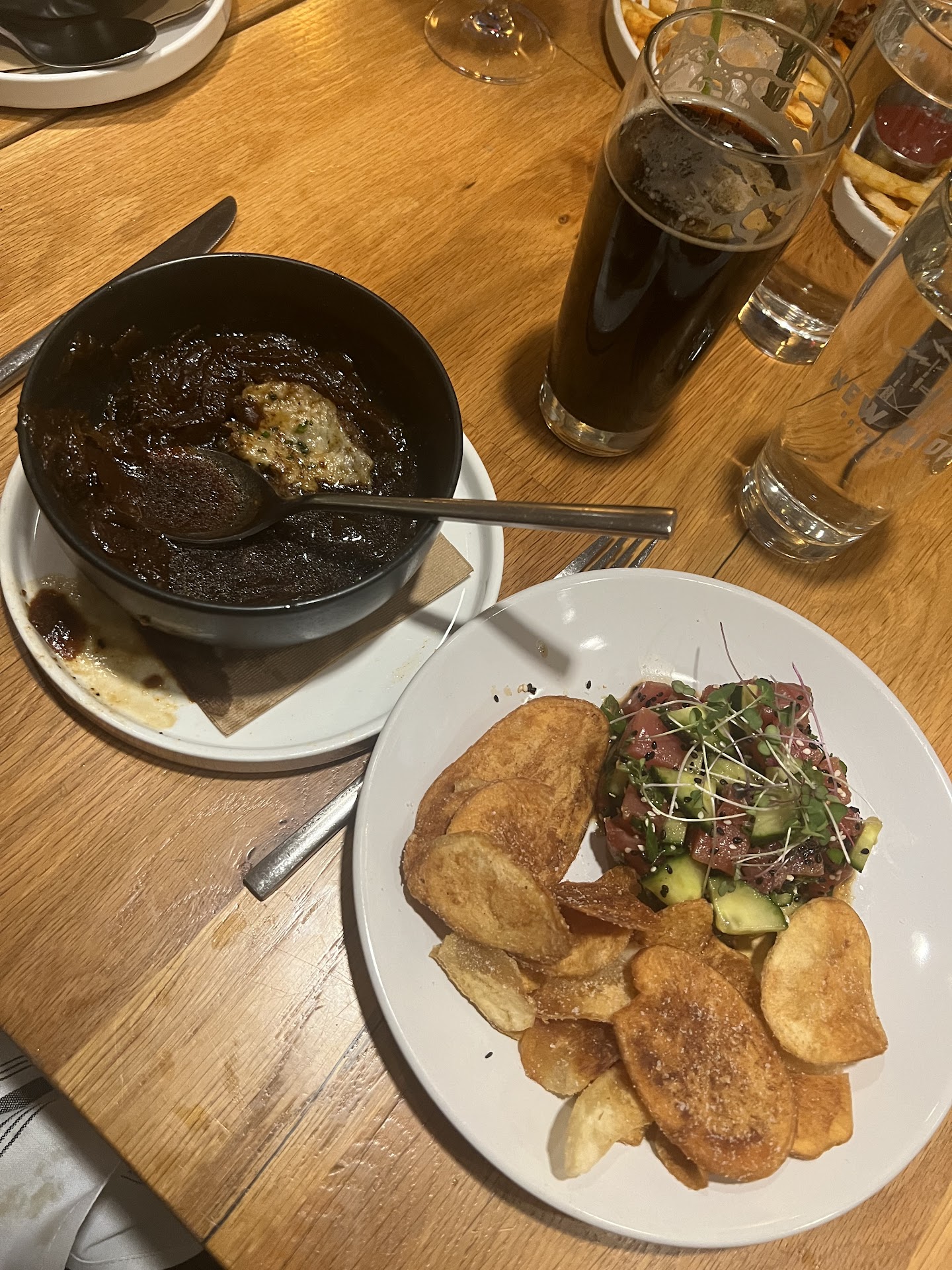 That being said, the food itself was mostly good. We ordered the spinach artichoke dip and I particularly appreciated the sourdough for dipping since I’m allergic to corn so can’t do tortilla chips. I also ordered the ridge burger which was excellent - very juicy, delicious sauce, and a double patty so plenty of meat. The side salad was fine but skippable. My husband ordered the catfish sandwich with the hot sauce on the side - it came out on the sandwich. We suspect because that detail wasn’t conveyed to the kitchen. He ate it anyways since he didn’t want to have to wait even longer for another. The piece of fish itself was also disappointingly small, especially compared to pictures we’d seen online. Thankfully the check-ins were a bit better once we had our meal so we were able to quickly get the check and head out. Overall, a mixed bag. If we give them another chance perhaps we’ll try sitting inside to see if there’s a...