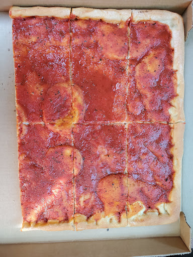 Read moreWe purposely stopped here for the square tomato pie. No place to eat inside, so we got a half pie to go. It was served warm and was a bit more on the doughy side than I expected. There was no cheese (that I could see or taste), and the minimal amount of sauce had a good sweetness to it. A very good, unique neighborhood tomato pie! Definitely give it a try if you're stopping by New...