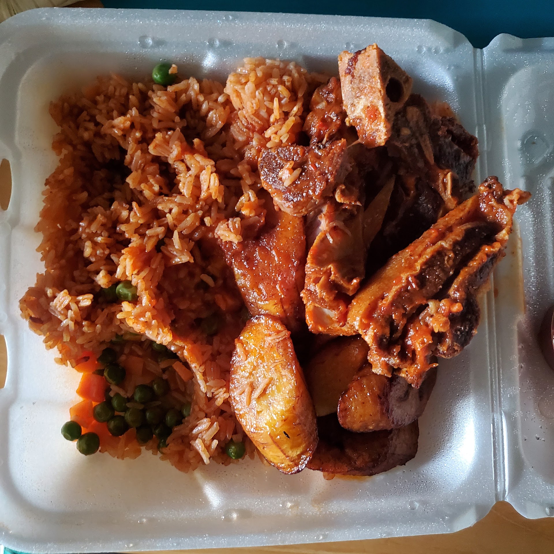 I had the Jollof rice with goat and it is by far the best jollof rice I've tasted in Philly. I've eaten at many of the other places in South West, upper Darby, and Northeast. This place has AUTHENTIC Ghanaian jollof rice; NOT dry rice with a little container of hot sauce and calling it jollof. It has the right color, smell, flavor, and texture. Y'all won't be disappointed. Another time I got the waakaye and that too was amazing! I will DEFINITELY recommend this...