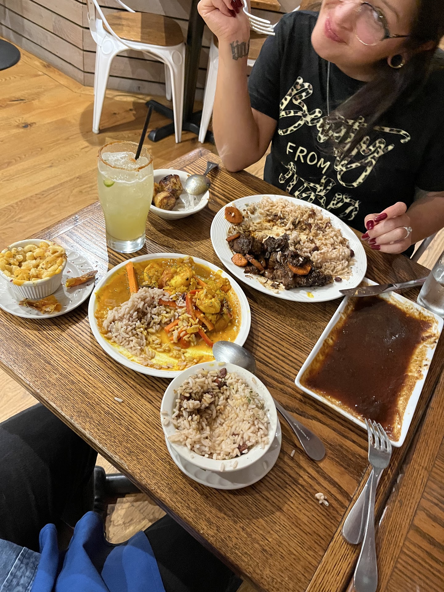 Read moreOk. Mixed bag here. Was looking for a Caribbean restaurant and this place was recommended. Menu items looked good. Gave them a call at 730pm on a Saturday for a take-out order and was told it would be about 20min. Showed up at 745pm expecting a short wait, paid for my food, and had a seat. I did not walk out of that place with my food until 830pm… the restaurant was neat, clean, and comfortable, staff was very friendly, but that wait was unacceptable. I got the Curry Goat, which was delicious, just like my auntie used to make, but it was so hot I burned myself. The sides I got (rice and beans and Mac and cheese) were just OK and were a little cold. I also ordered the Jamaican Curry Tofu for my husband, with rice and beans and greens for sides, and everything was just OK, and on the cold side. Overall, an underwhelming dining experience. If the curry goat wasn’t so good, I wouldn’t go back. But, I’m curious to try their Jerk Chicken, plantains (which they were out of when I ordered…), and maybe some patties. I just can’t be TOO hungry if/when I go back if it’s gonna take an hour...