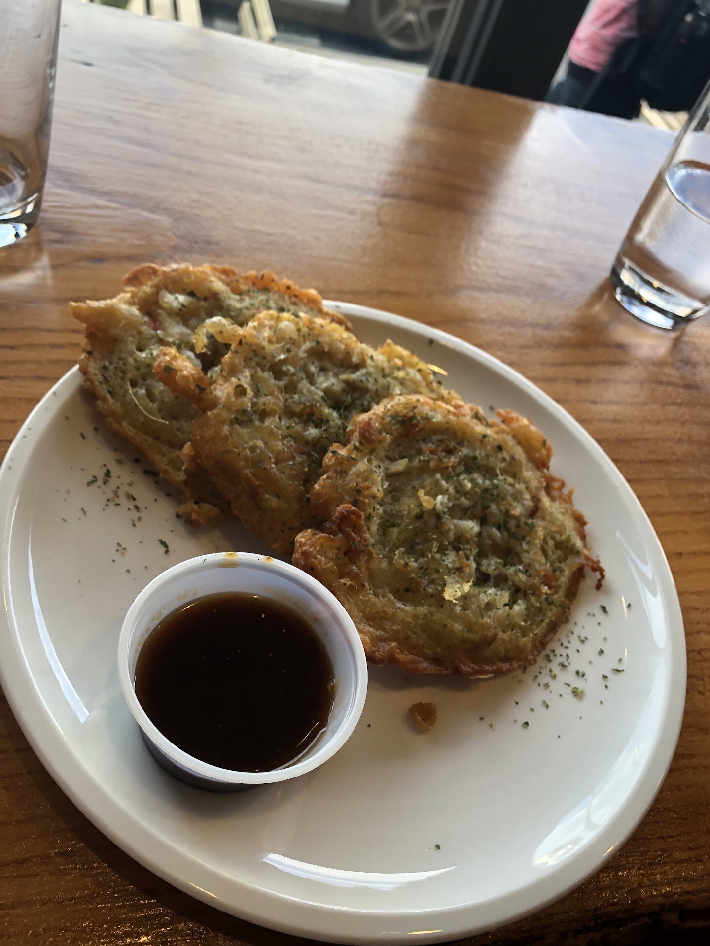 Ok but these salt fish fritters… ORDER THEM!! My boyfriend said “this is everything I have ever wanted a fritter to be.” I included a picture of them, but they look even more appetizing in person. They are crispy on the edges and light and soft in the middle. They’re really something special. Next time I’ll try the vegetable ones.