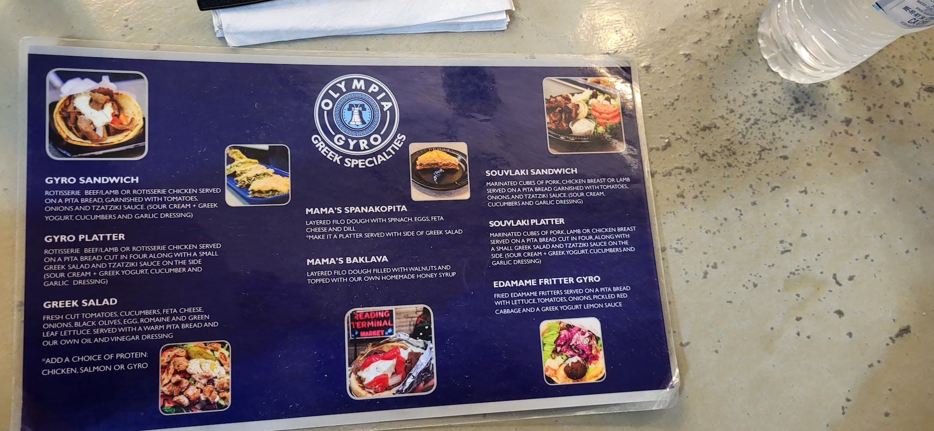 Read moreLovely folks who work here should eat at a Greek place sometime. A Greek Gyro with a Greek salad was shredded lettuce (which to me says bulk lettuce for sandwich topping, not a salad). 3 thin pieces of tomato (hot house and flavor-less even in prime tomato season this August) two olives and one small cube (about the size of a Monopoly dice) of feta cheese. The oddest thing about this "Greek Salad" was the many minced white onions on the side of the salad. White onions on a salad are too assertive and minced ones are unappealing looking and hard to pick out. No hot peppers, no stuffed grape leaves, there was even no dressing on the salad. The lamb gyro meat was dry but the tzatziki sauce was thick and tasty enough to cover it over. The service was lovely and fast and the folks were very friendly and welcoming. They seemed to care. But maybe they just don't eat their own food? I can't speak for the rest the the menu, but skip the lamb gyro and...