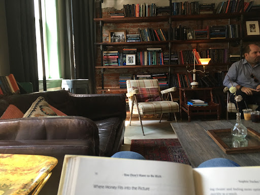First off, the space here is one of the best in the city. You can choose outdoor seating, a lively cafe atmosphere indoors, or a quiet, secluded space upstairs that is ample in size and has super comfy couches for reading and lounging. The upstairs is my favorite.