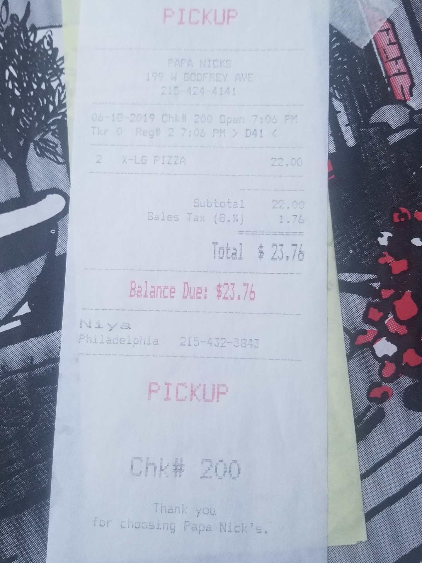 Read moreI will start with a piece of advice to customers and please take this at heart. I rarely leave reviews. DO NOT order from Papa Nicks. ON 3/1/19 at 5:48 pm I called to place a dinner order. The young lady on the phone was nice, although she seemed a bit nervous, perhaps she was a new employee.. I made her feel at ease by slowly giving her my order and repeating every item in details. She repeated the items to me and they were incorrect. I said it's ok .. I will repeat my order .. I even said to her that I wanted her name so that I could leave a review and say how nice she was. Her name is Ashley. My food arrived a bit over an hour.. not complaining as this is typically the waiting time. The delivery driver was very nice as well I gave him what I thought was a nice tip. When I open my order I see that 1 item was missing and that one item was made incorrectly. NOW at this point, I'm HANGRY.. I was very nice to this young lady and repeated my order several times YET she still managed to have it wrong. My daughter offered to call them and informed them of the mistake, to which they said that they would make the missing order but would have to charge me.. I mean c'mon its YOUR mistake. The manager " I suppose" got on the phone with the same reply. NOW here is the thing, Even if you haven't been in customer service you should know that to keep your customer happy and wanting to come back you would take a $6-10 loss and provide the customer with what they are asking. Very disappointed. I read the reviews before I ordered and I still decided to give them a chance.. Please don't do the same .. keep looking for another restaurant. Dear Mr. Papa NIck, I would be glad to come and train you as well as your staff on how to run customer friendly restaurant .. I can't speak for the food as I did not have my meal delivered. I can, however, say that I ultimately placed my food order with Larry's steak and it was delicious, delivery time was...