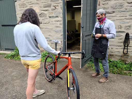 Read moreThe owner is mostly friendly, though it seems he's very busy and doesn't give the best customer service experience. I felt a bit pushed out of the shop, but saw why: a few minutes after we got our bike bits and cafe items, the place had a line out the door. I'm honestly not sure why, though. The cappuccino and espresso we had were ok for the u.s., but when served in a paper cup, the espresso was immediately luke-warm. I just feel that if you're trying to sell yourself as some trendy cafe bike shop, you ought to be pretty good at both. Prices are sky high for basic bike things, cafe stuff is priced appropriately for Philadelphia. I'm looking for a local bike shop and this definitely won't be it. 3 stars for availability, convenience, and novelty (hip...
