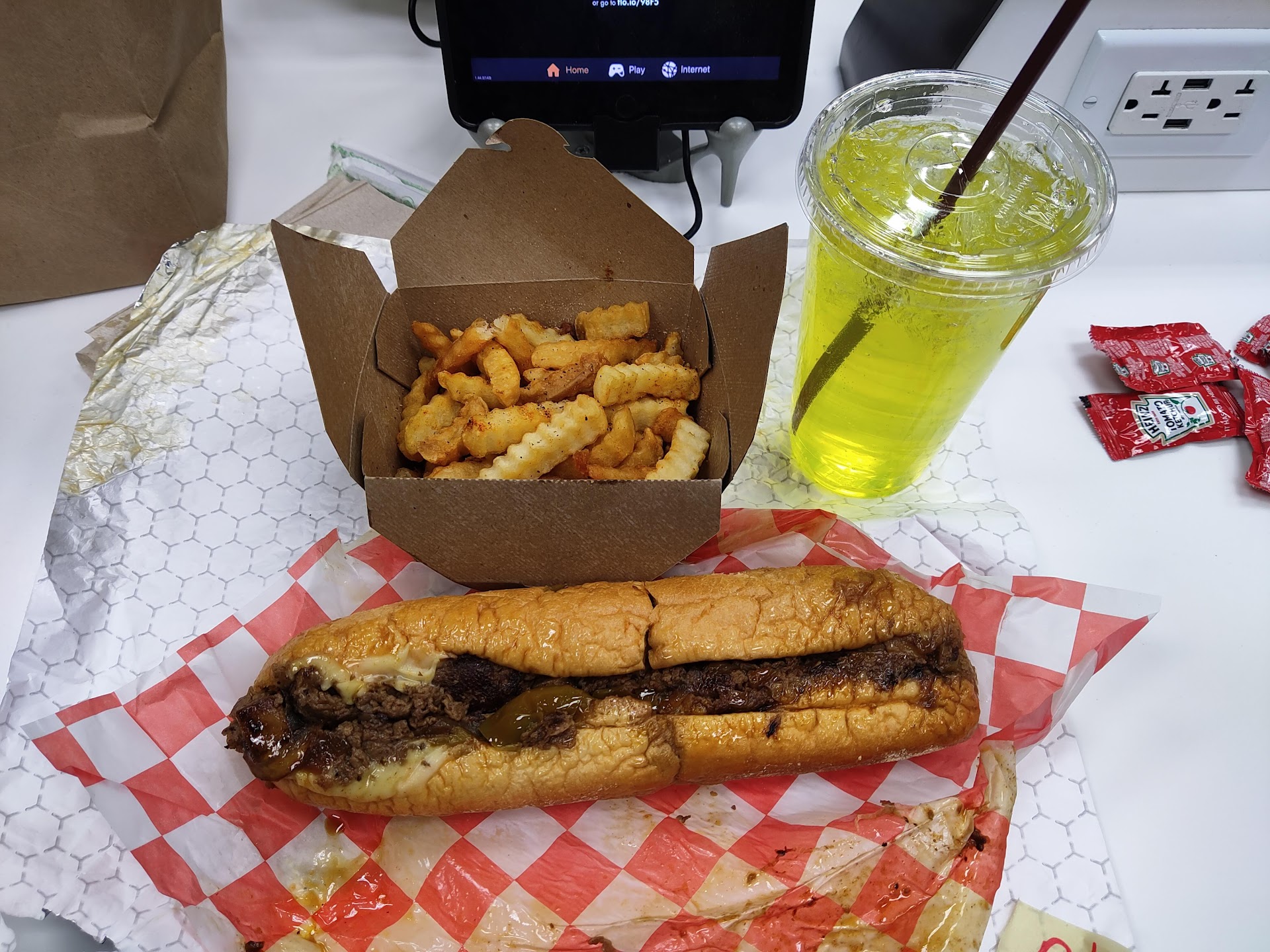 As a lifelong Philly resident my expectations were low for an airport cheesesteak. But I needed something fast and the line was short so I gave it a shot. Actually a decent steak. Good amount of meat, with each steak individually cooked (not from a giant pre-cooked pile stacked on the grill). Fries are crinkle cut and come with seasoning on them. Basic steak is $15, combo with fries and drink around $20. I’ve had better steaks in Philly to be sure, but I’ve also had a lot worse. Could improve with a better roll and some more spices on the steak meat (some pepper and salt at least). The guys working behind the counter were very nice and helpful (ordering and paying system...