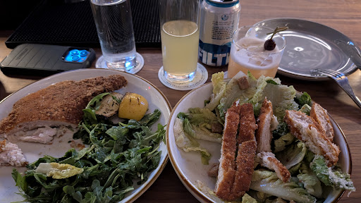 We had the scallop crudo, buffalo chicken pasty, and eggplant cutlet sandwich. The only thing I could taste in the crudo was coconut and sweet citrus which completely overpowered the flavor of the scallop so it felt more like eating a oddly-textured dessert than any kind of seafood. The buffalo chicken pasty was really nice, but came with a blue cheese dipping sauce that had something sweet added to it and made it inedible to us. Finally, the only thing I could taste in my eggplant cutlet sandwich was mayo. The mayo was supposedly garlic aioli and there was some amount of tapenade on the sandwich, but the mayo was so overpowering and did not deliver on any of the other flavors or tastes that should have been present.