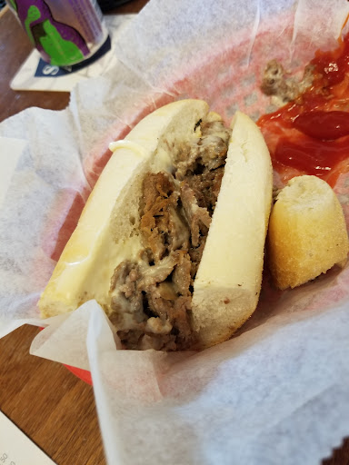 I've wanted to like it here, this was our 3rd try. I understand it's crazy busy right before a Phillies game. It was so loud, we couldn't hear each other speaking. I asked the server if we could take the table that she had just cleared & she said we could. I thought she'd finish cleaning it when we sat down. She came over & took our drink order. We had to ask if the table could get wiped down before our food came out, because she already put our drinks on the dirty table. My beer wasn't cold. Ordered a ABLT (BLT w/ avocado), a chicken cheesesteak w/long hots & an order of fries. The BLT & fries arrived first. We hadn't really eaten anything yet (& it was almost game time), so we were pretty hungry. The BLT (which turned out to be a club) was barely toasted & the bacon was severly burnt. The fries were good. We split the BLT because we were so hungry & my cheesesteak hadn't arrived. As we were finished eating, we were going to get the bill & let her know the cheesesteak never came. Forget that, here's the cheesesteak. I have to say, this was among the worst cheesesteaks I've ever had. When it arrived, the seam of it was soaked, so it made it hard to eat because it was so soggy. The amount of juice (?) that came out of it, filled the sandwich boat, it came out in a steady stream when i picked it up. It wasn't seasoned & the long hots were stringy. When our server came over to ask how we were doing, I showed her the uneaten, burned bacon & I said I thought the bacon needs to be cooked less. Cooked less, she said. She looked at the bacon & kinda laughed. We asked for the check, which took a while & then we couldn't get her back to pay, so we took the check to the bar, so we could go. I'm gonna have to say, the strikes & you're out....