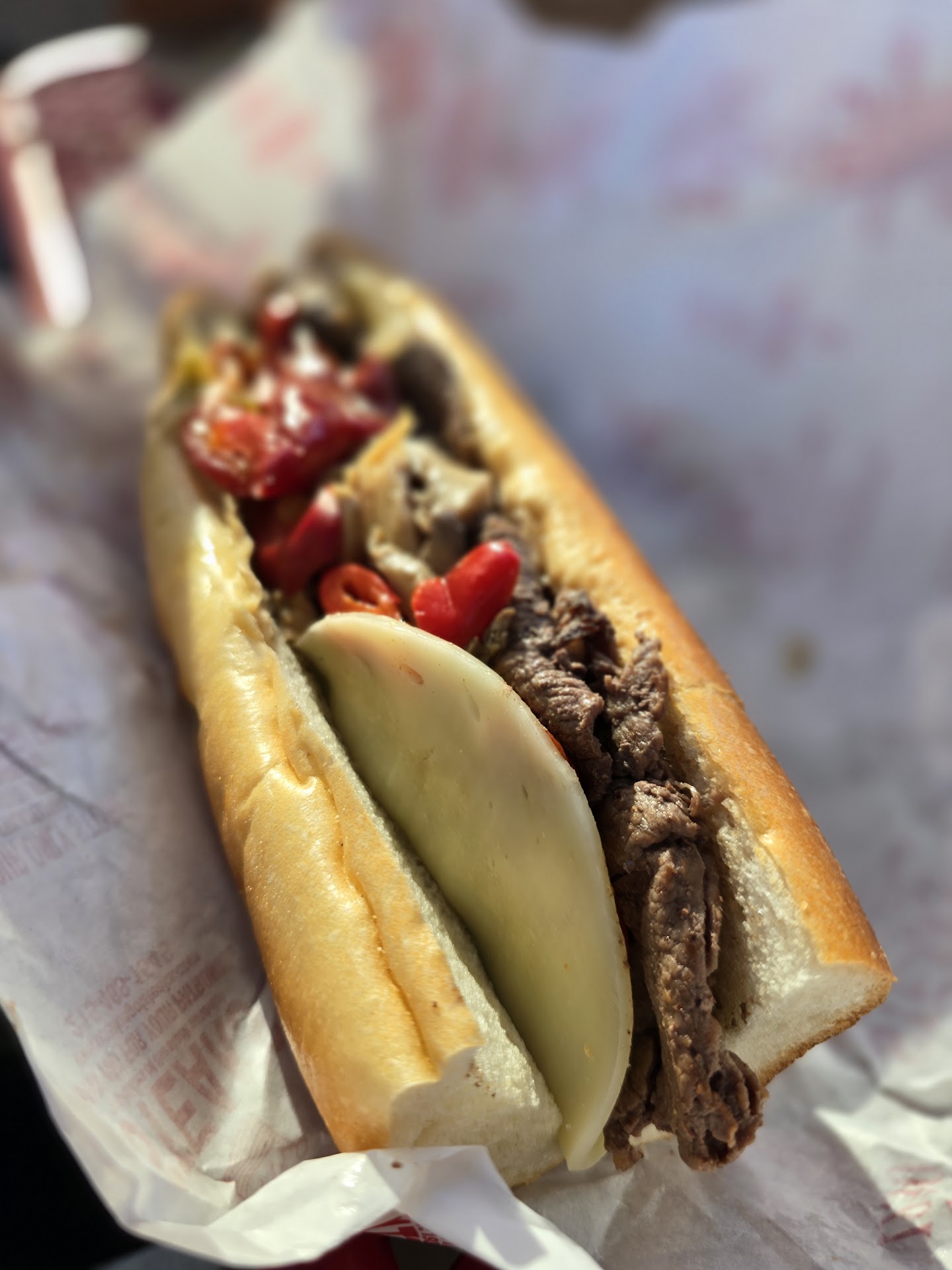 Read moreWhen in Philly you must have a philly cheese steak! There are 2 restaurants on either corner Pats and Genos. They have a big rivalry about which is better and are a famous stop for many celebrities. We ate at Pats king of cheese steaks and was not disappointed. The line is always long so we waited about 15min. The steak was good and had a lot of meat and cheese. I also got peppers and onions with whiz. It was really good but my only suggestion would be to add mayo. The atmosphere and being downtown for the first time was full of people, cars, buildings, art work, and an energy that was palpable. The workers were friendly and accommodating. It's a MUST stop while...