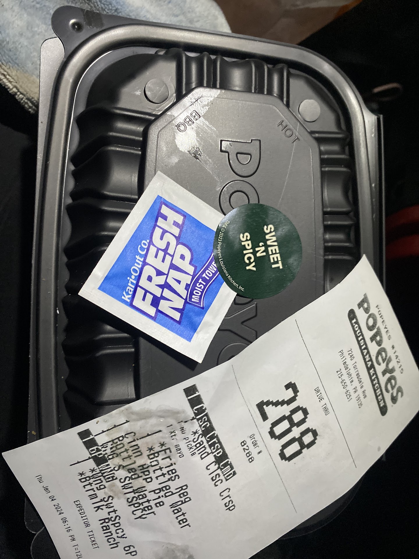 Ā Ā Ā Read moreI really wanted to leave a good review. The food was good, everything tasted great. My issue came from black mold in my soda. I ordered a Fanta strawberry soda, and it was full of black mold from a filthy spout. (I have worked fast food before, and I know exactly what it was floating in my drink). My order was made on Uber Eats, and I didn't want to make a fuss and get money back. Please just clean your soda machine right every night. It takes a minute to take the spouts off the machine, and give them a good rinse with warm water to prevent mold and dry soda from leaving little black floaters in someone's drink. I ate the food before I saw the drink, or I would have thrown the whole order away. Completely disgusting, and disappointed, considering how we were so glad to have a Popeyes so...