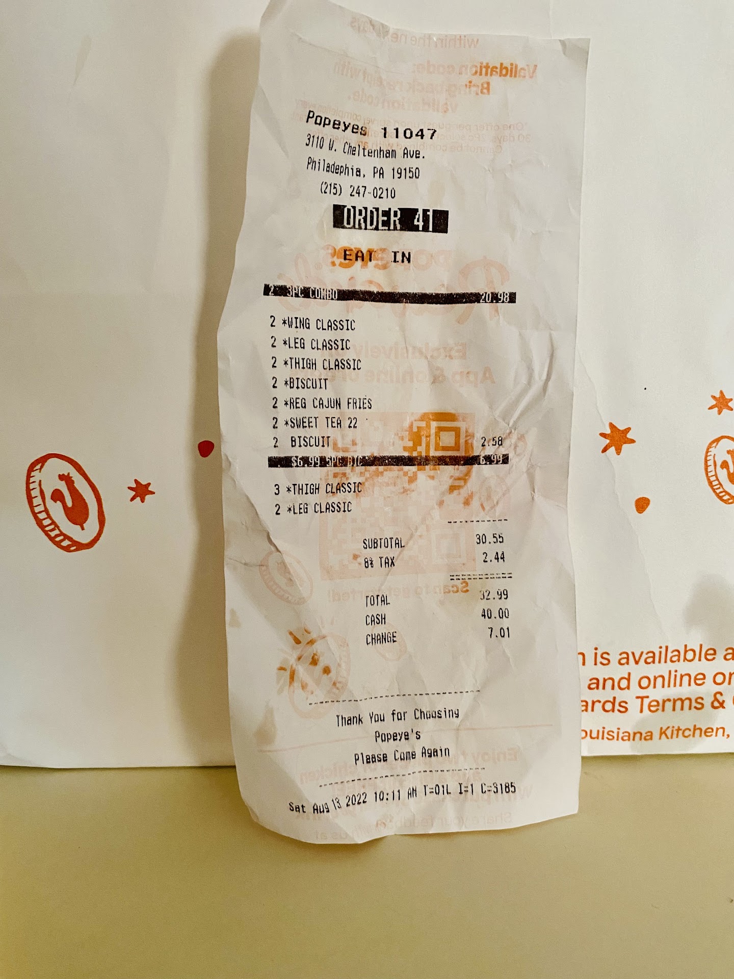 Read morePopeyes on Cheltenham Avenue has to do better. They have great hot food but the service is too slow. They always have a line and I understand that they are understaffed and overworked as most places. I treated my daughter and it was the closest location. I expected to wait and remained patient. Surprisingly yet disappointing the walk in order line wait time was faster than the mobile app order time. I walked in and stood in line and then decided to place mobile order through app figuring it would be a quicker process even though they had a line as well. I stayed in walk in line only to be told at counter to switch to mobile line which the wait started all over from beginning. Every customer that was in line behind me until I switched over had left the store before I received my online order (2 sandwiches and 1 fry).