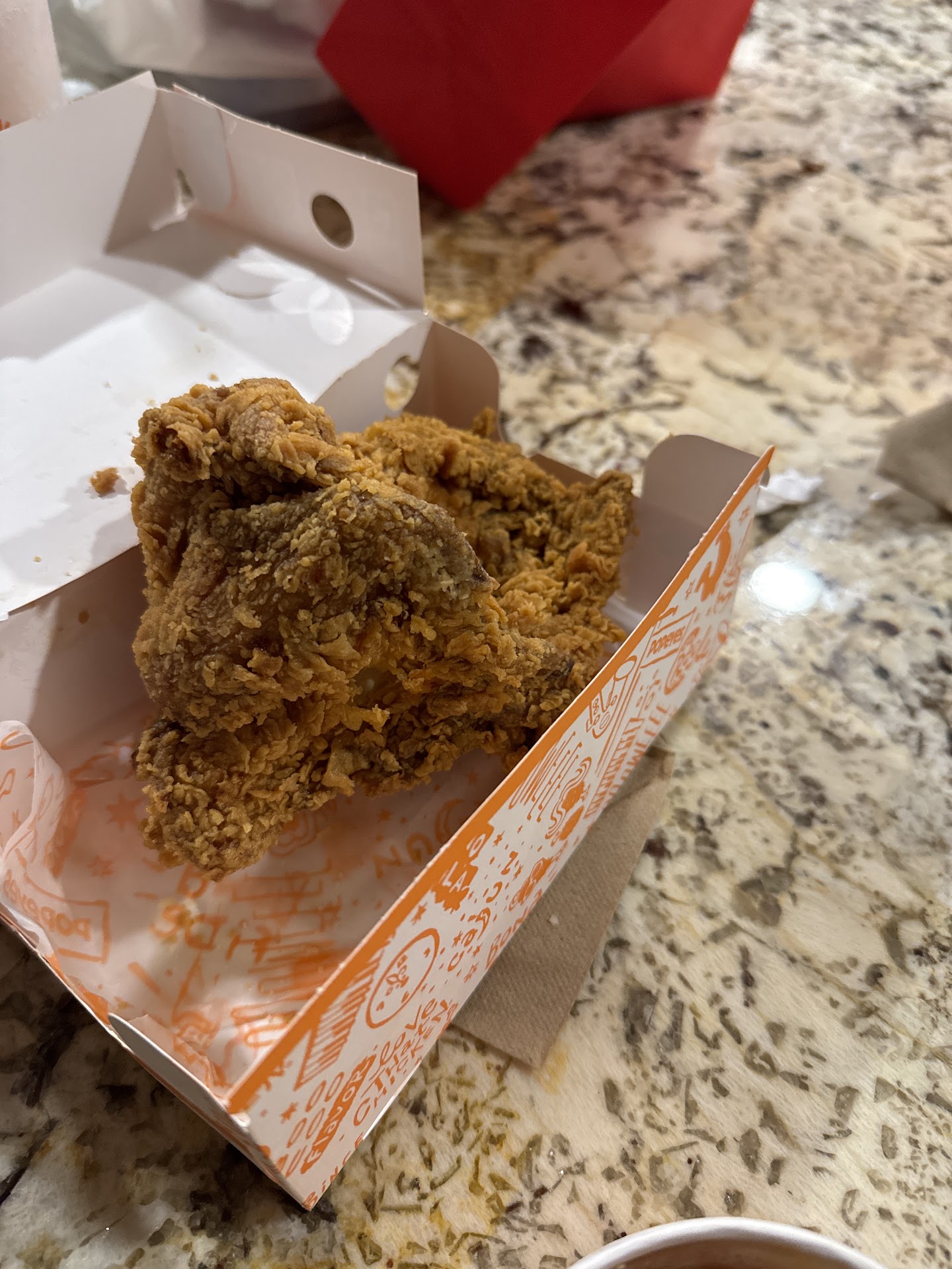 Ā Ā Ā Read moreWhere can I start? Well, I'm not too much of a fan of fast food places (junk food), but because Philadelphia Mills doesn't have many choices to eat I decided to give this Popeyes a try. I ordered 3 pieces of Tenders chicken, and let me tell you, I have no idea where the tenderness went to. As I took a bite the crispy layer was hard and tested bad. No flavor and what I was biting was nothing but flour and when I finally saw a chicken, it was only a small portion. I rather go to Chick-fil-A which their chicken tenders are better with good flavor, and yes, tender. Last time eating...