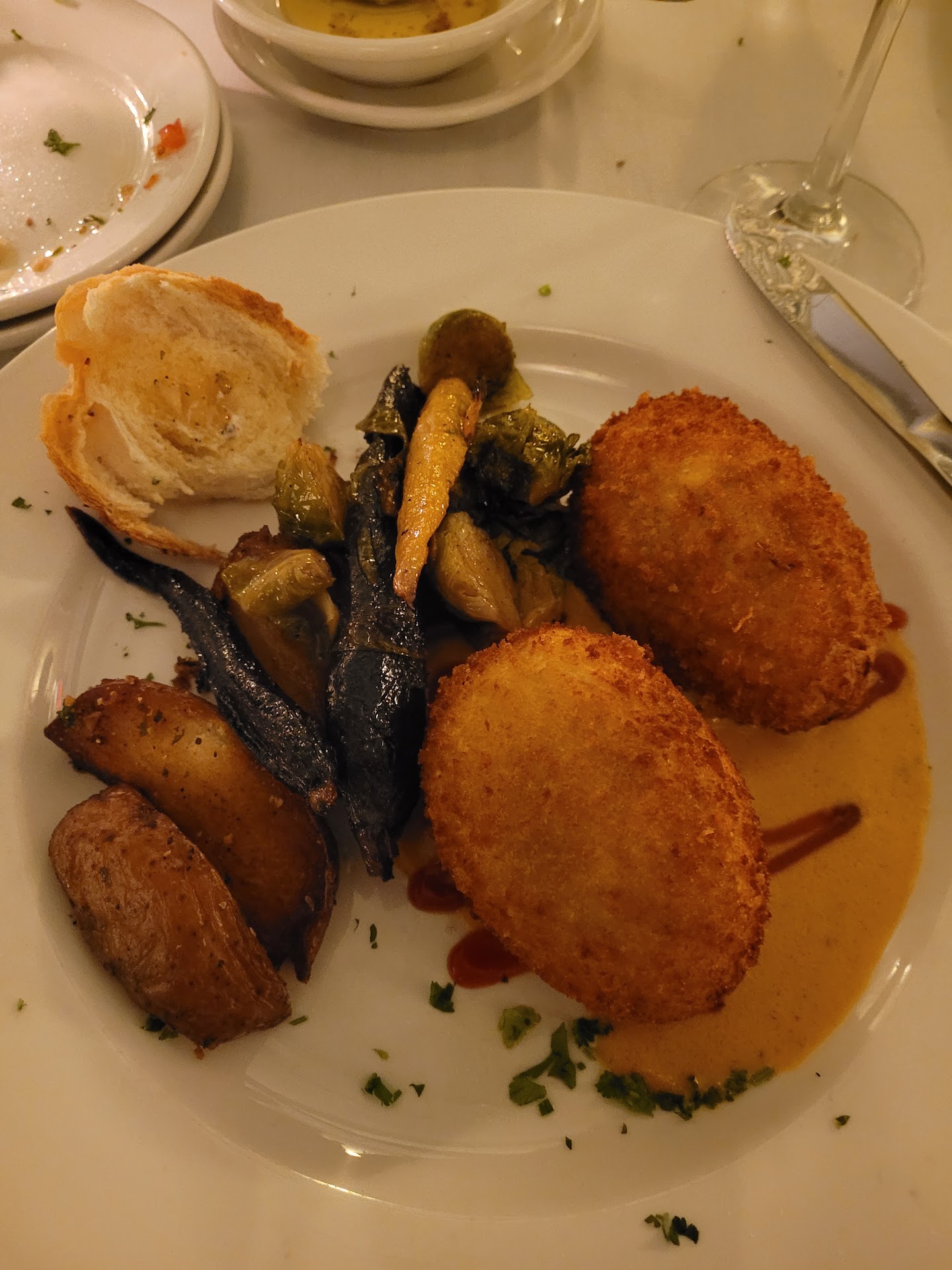 As far as the food was concerned - not much accommodation was made for vegetarians. The kitchen seemed to be sticking to established recipes and not delineating - I found this to be the biggest sticking point. I think some modifications could've been made so everyone could enjoy their dinner. I ended up with a plate of grilled vegetables for my "entree" - umm....thanks. The vegetables were palatable but nothing spectacular. I think the restaurant could've at least made some modifications to their panchetta infused pasta in order to make it veggie friendly - would've appreciated this moreso than a "entree" of sides.