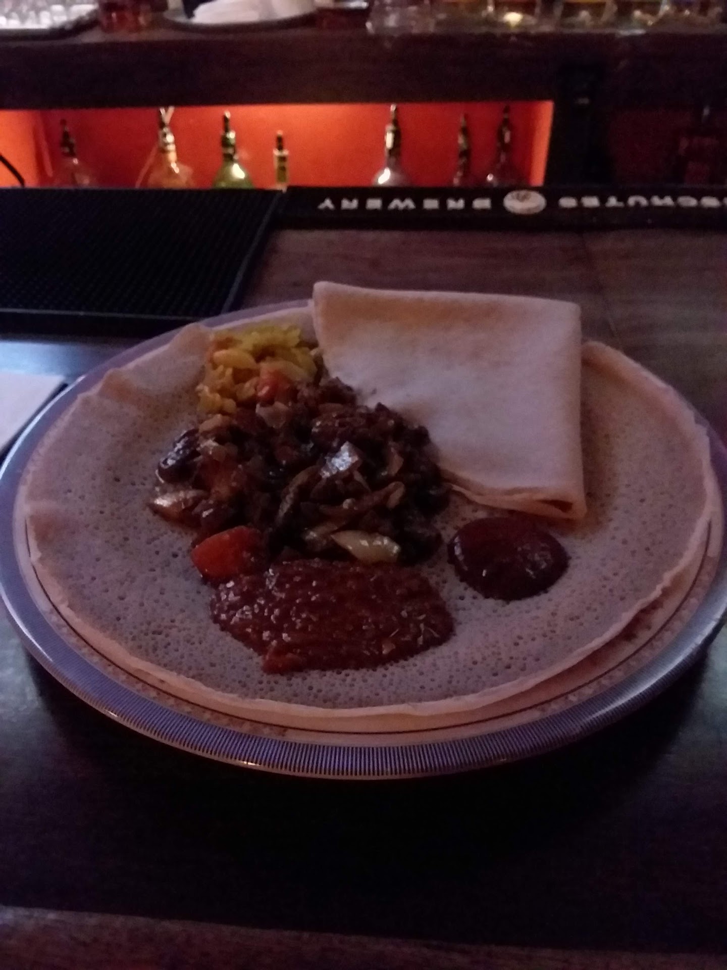 Read moreThis review is long overdue. My husband and I had dinner here several months ago. We were served food that never should have seen the light of day. The chicken was inedible, burnt to a crisp, hard as leather, mostly grizzle and completely tasteless. It was covered in stuff, so you couldn't see it until you started eating. We should have sent it right back, but we made an effort to try to find edible meat amongst the burnt bones. I can't believe that the person in the kitchen thought it was okay to put this on a customer's plate. We also spent the evening quite sick to our stomachs once we got home. I LOVE Ethiopian food, and we regularly eat at an Ethiopian restaurant near our home. We were in West Philly and thought we would try one of the many Ethiopian restaurants in the area - should have gone home to our lovely neighborhood...
