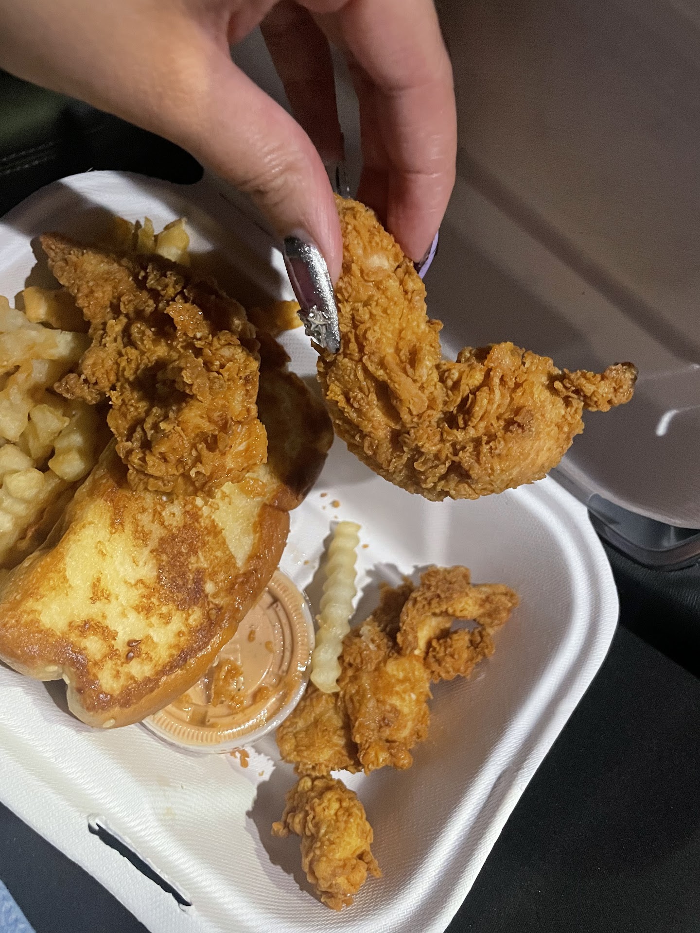 Ā Ā Ā Read moreĀ Ā Ā Read moreThis was maybe the worst experience Iāve ever had eating out. Ordered at 6:03, promised time 6:18. They were very busy, so they had all mobile orderers wait outside which is understandable. The girl working the door was calling people in when their food was ready. On average people were waiting 30-40min which seemed reasonable considering the volume of orders. However, there were a few of us that had been waiting quite some time and people who had ordered after us got their food first. We appealed to the door worker to check and see if our orders had been lost after about an hour. She was very rude to all of us and simply said āYou canāt go in. Weāre backed up. Thereās nothing on the shelf.ā I told her that I was concerned my order was skipped or someone else had taken it. She did nothing to check on it. Just would not let us in. We could see one of the mobile order racks from outside and there was a bag on it. We asked her to check if it belonged to one of us. She started yelling back at us saying āI told you there are no bags there!!ā Flailing her arms around and getting aggressive. We said we can see a bag and she continued to yell at us. After pointing the bag out from where we were standing, she said thats the drink rack. She could have said that from the beginning without raising her voice, and there were no drinks being bagged as part of the process from what we could see. After 1hr 30min a different worker came out surprised to see that there were still mobile customers waiting, and said they cleared the boards. She brought the four of us in one at a time and made our food on the spot, clearly having lost our food some time ago. Our drinks were sitting on the shelf, having been completed at 6:36 per the label. They were watered down and the drink carrier completely soggy from condensation. At after 7:30 they finally finished our food and forgot the extra sauce I paid for. The original worker who was rude to us kept coming in and out, loudly talking trash about all the customers who were āgetting smart with herā. Makes me wonder if they received any type of customer service training before opening at all. Donāt eat here unless you want to wait an hour for cold chicken and get verbally abused by...
