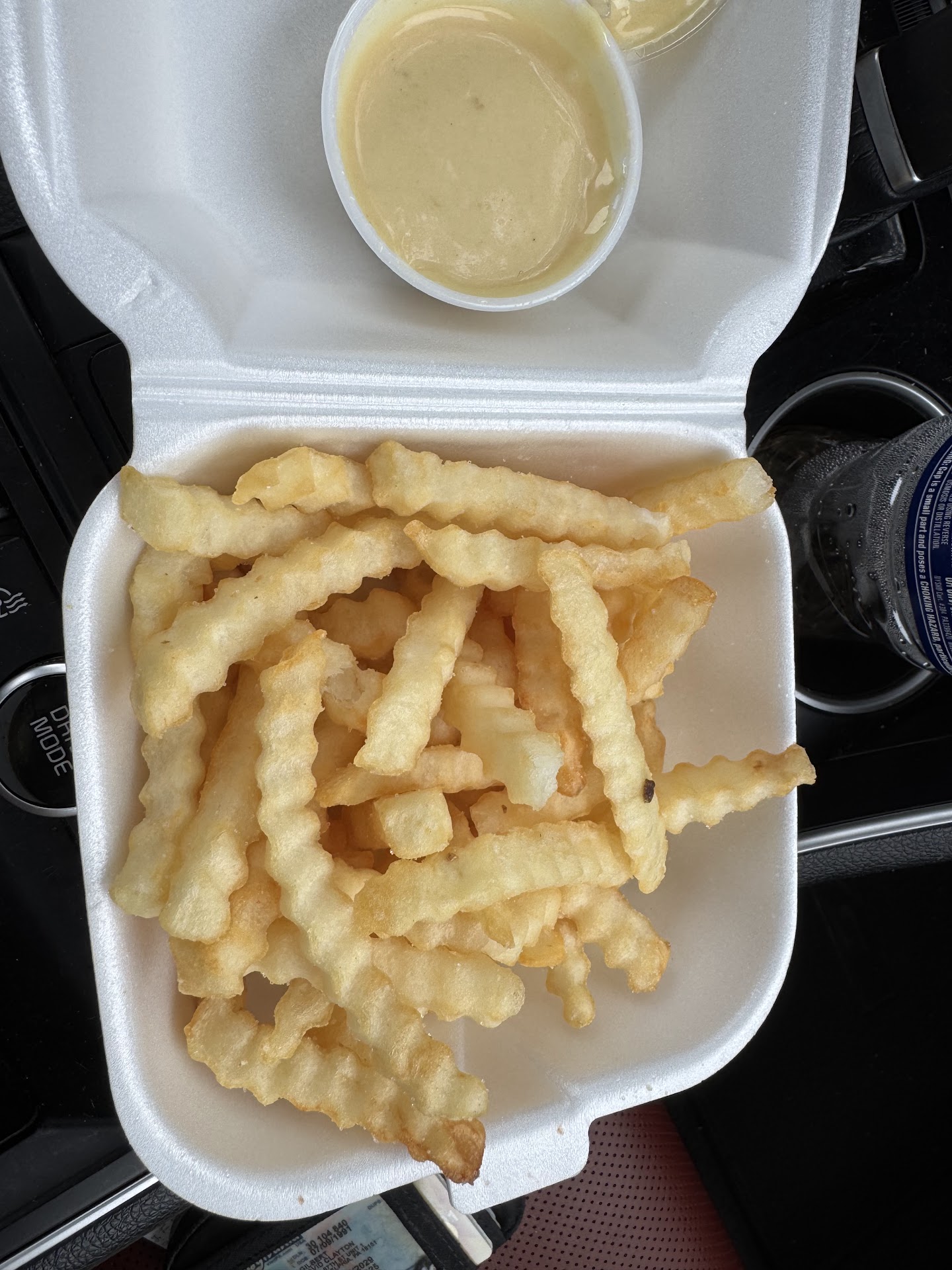 The chicken, while crunchy and moist, lacked flavor and depth, failing to live up to its reputation. The accompanying "Texas toast" had an odd taste, and the crinkle fries, while not terrible, were far from exceptional.