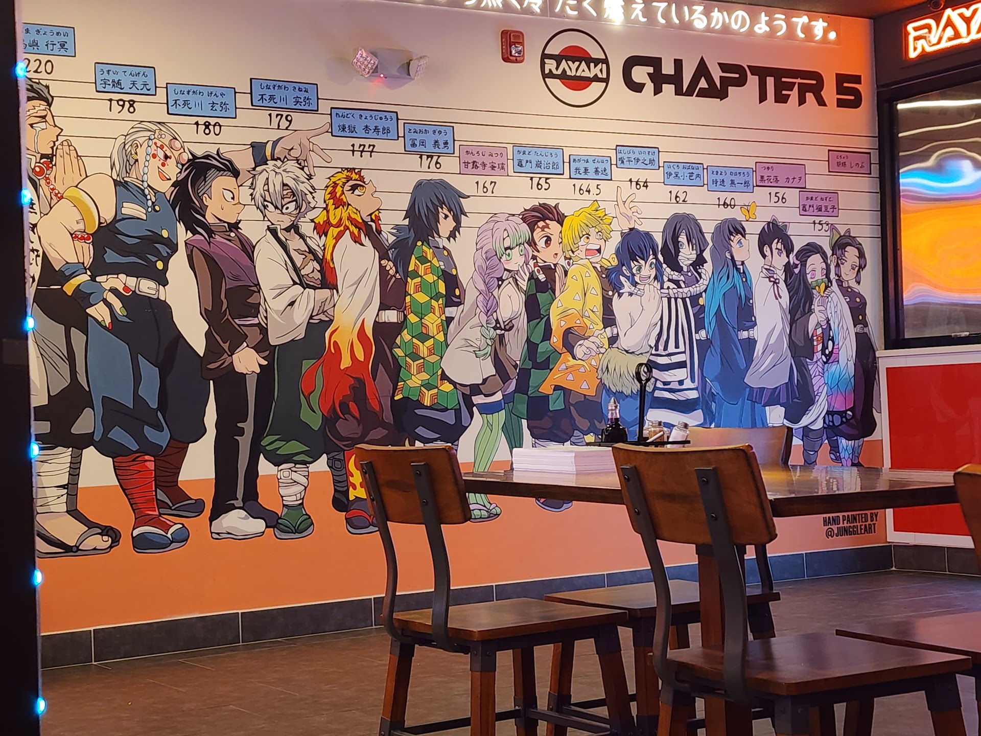 First off, if you are an anime fan, this place has the perfect atmosphere. The walls have a ton of art from Demon Slayer, and other shows referenced all over. They even had One Piece on the tv when we visited.