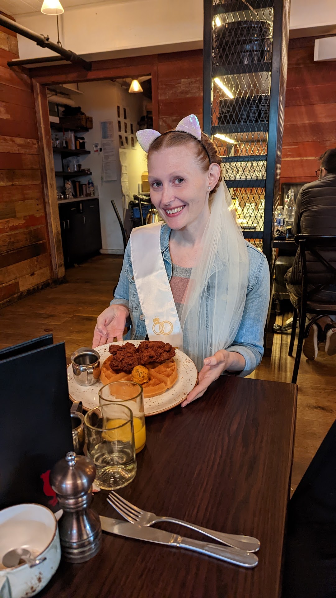 My friends had brought some goodies for me like a sash, a veil, and cat ears (most of us are cat ladies, I have 2 myself) to make things feel more "bachelorette" without going over the top (like I said, I am pregnant). Seeing me with the stuff on, staff would walk by and say "congratulations!" and acknowledge they were part of our celebration and I thought that was nice.