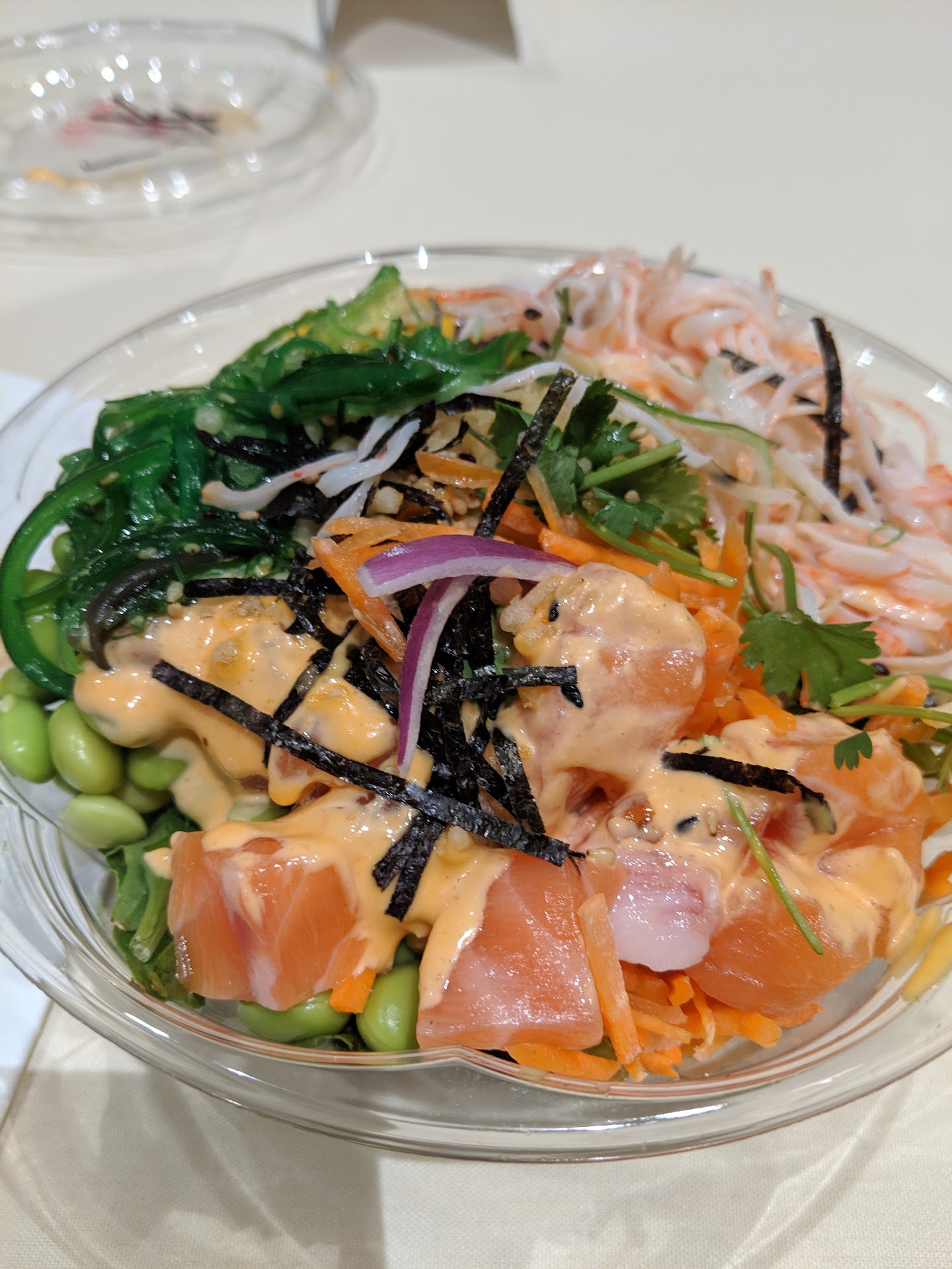 Read moreThe staff builds the poke bowls with very fresh ingredients. Customers can choose from a list of protein, vegetable, fruit, and sauce combinations or can build a bowl by choosing their own ingredients. Portions are very generous, the choice of ingredients is extensive, and the various sauces are used lightly with just the right touch. My ingredient-laden bowl that included fresh raw tuna and salmon cost $9.75 plus tax -- an incredibly reasonable, filling meal. I'm looking forward to eating at Red Poke...