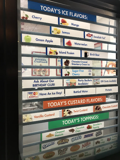 Read more$6.50 for a large cone of vanilla "custard" that is sadly identical in taste/quality to that offered at IKEA, MacDonald's or your favorite Chinese buffet. The last time I had one (a couple years ago at a different Rita's) the "custard" was actually custard and it was delicious. Maybe they're pinching because of the cost of ingredients? Dissapointing anyhow. The staff is on the miserable side, but given that each customer here spent on 15 minutes bugging them about who knows what, I kind of get it.