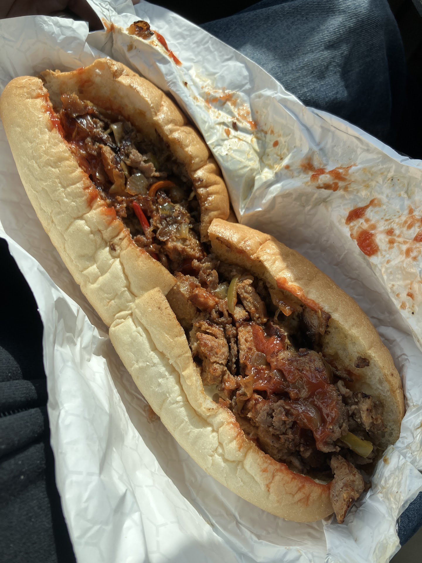 The staff was great and made some recommendations. Food came out pretty quick and was hot. I started in the car and it hit the spot. A nice mix of heat from the spicy sausage. Iâd be curious to try just a sausage and pepper sandwich and a cheesesteak on its own, too, but you donât get this kind of combo anywhere else. The fries are lightly battered. Not my usual choice of fry style, but they went along with it well.