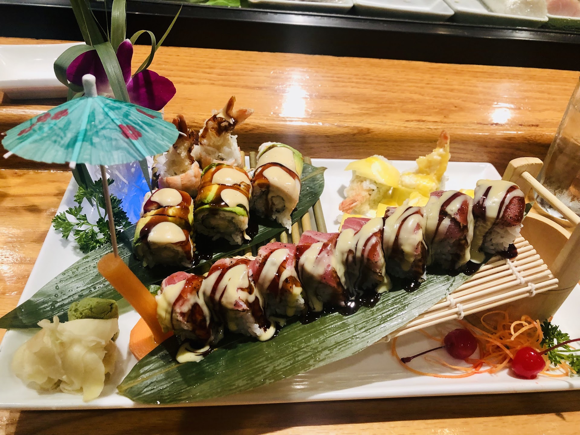 My 8 year old son and I had a Mommy Dinner Date here the Saturday before Mother’s Day. We sat at the sushi bar so he could see the chefs in action. The waitstaff was super friendly, engaged with my son, and were very attentive throughout. We shared edamame, and I had spicy tuna tartare (served in a stack with avocado and mango, and 3 types of roe on top) - delicious! Little man had steamed pork gyoza and finished the platter of 5 or 6 himself. They brought kids chopsticks and a fork, so my son could choose. We ordered 3 specialty rolls - way too much for the two of us, but they all sounded so good, we decided to just go for it. They surprised us with an incredible omikase-style presentation! Completely unexpected and such a wonderful and kind gesture. We knew Daddy would be up for leftovers, so we saved room for dessert. We decided on a scoop of vanilla, and a tempura fried green tea. They must’ve heard us debating the chocolate cake, because the server returned with chocolate cake with a scoop of vanilla, and the green tea. They wished me a Happy Mother’s Day and said dessert was on the house! We honestly couldn’t have asked for a better dining experience (unless they had bar service and lychee martinis ;-). We will most definitely be back, and happy to support these new owners who are really going out of there way to deliver a great experience. I’m not being paid for this recommendation, but I did get free dessert :-)...