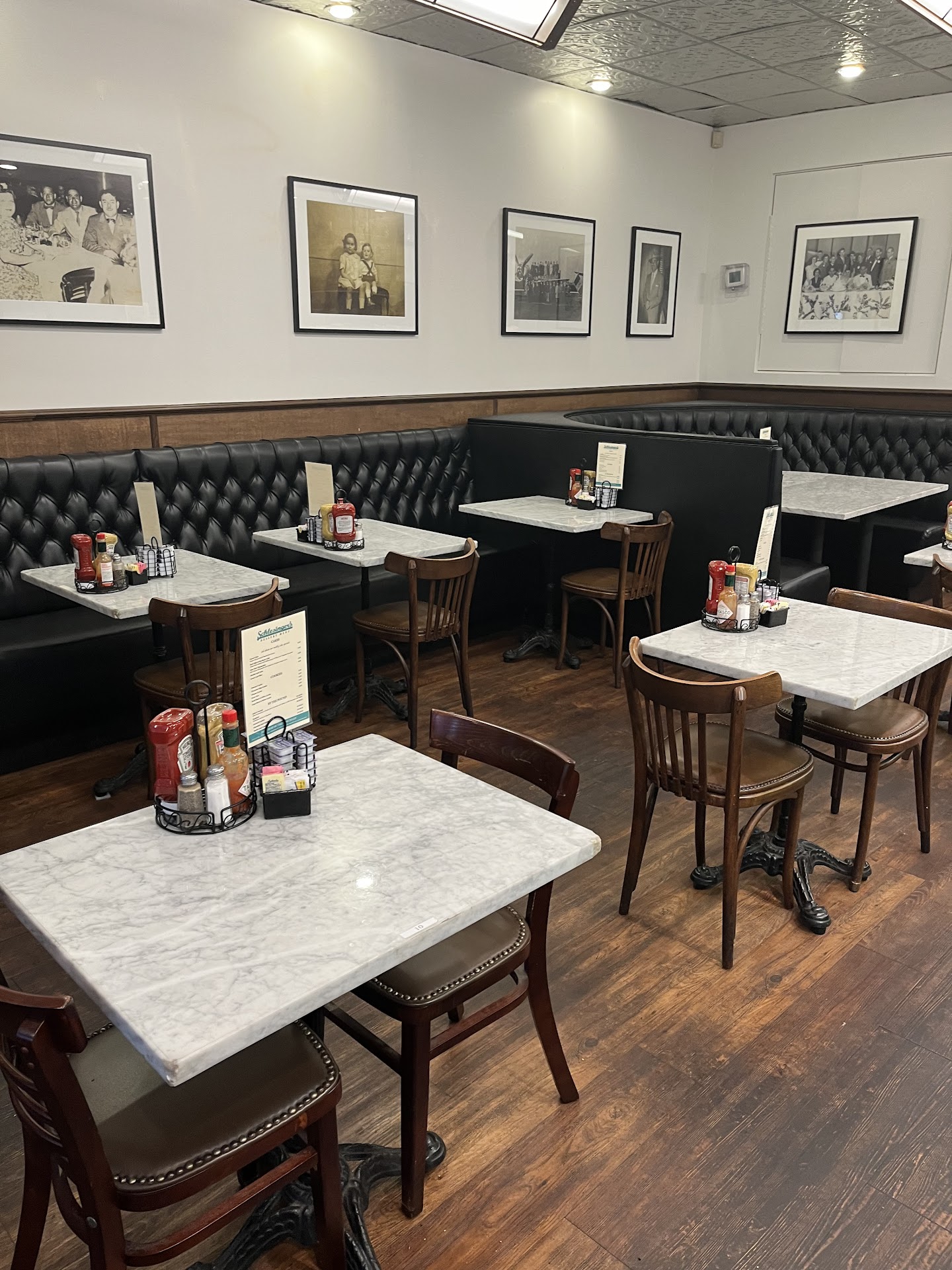 I discovered this place purely by accident -- I'd intended to dine at one of the pubs in the area, forgetting how crowded and noisy they'd be on a Saturday evening -- and I was delighted. The ambience is old-fashioned, like a 1960s diner, with fluorescent lighting and wide, roomy booths. The hot open turkey platter, while arranged a little oddly -- the two slices of bread overlapped, leaving some of the turkey by itself -- was fine, with a good gravy; and they accommodated me when I asked for whole-wheat instead of white. It came with a salad and a side order (I chose the kasha varnishkas, which was first-rate). There's also a "pickle bar" with which to start the meal! And the prices are quite reasonable.