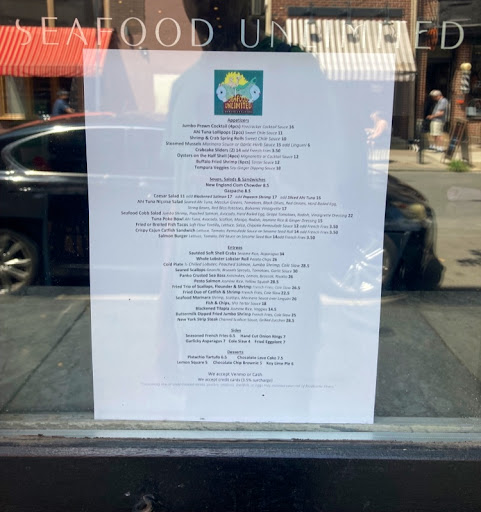 You cannot pay your bill with a credit card here. There are no clear notices that are posted, anywhere except in fine easy to overlook print in the menu. Unbelievably, in the upscale center city neighborhood they are located in, they actually have a very out of place ATM machine. If you are without enough cash, you will be put in a position to pay the ATM machine fees, along with any associated fees , your bank charges for making ATM transactions, outside of it's network. This could add another possible $5.00 to your cost of eating there. I don't know if this second experience irked me more than this one because both are equally bad for different reasons. Seated next to me was a table of adults and two children. This particular evening, there was a lobster special going on . I was very aware when this table placed their order , as due to our close proximity, could hear clearly everything going on . After about 20 minutes, or longer the waitress, comes out and informs the group they ran out of lobsters. Sometimes restaurants due run out of items on a menu, however, you are informed of the situation in a timely manner . These people waited long enough that when the waitress appeared, you would expect your lobster dinner to be arriving, not being informed at this late stage that the much anticipated item you wanted would be missing. Not once did I hear any offer of some kind of compensation for this inconvenience. They should have offered free desert, or a percentage off their check. What they got was nothing . The owner was present, and he did not even come over to the table to introduce himself, and offer a personal apology. I couldn't help to start a conversation about this matter, with one of the adults sitting close to me. Just to make sure, I asked him, have they not been waiting a while for their food. He confirmed, what I already had known to be true. I did suggest to him, he speak with the owner asking for some kind of compensation, since it hadn't been offered. However , he declined to do but expressed to me, the main reason, they came was for the lobster dinner. Once again, I felt really bad for them and feel Seafood Unlimited definitely needs to offer better customer service than what these people experienced. Also do get rid of that ATM machine, and post an easy to see notice that cash only is accepted. It is easy to see your janky ATM machine is another stream of income for you, that you profit from when unsuspecting customers are...