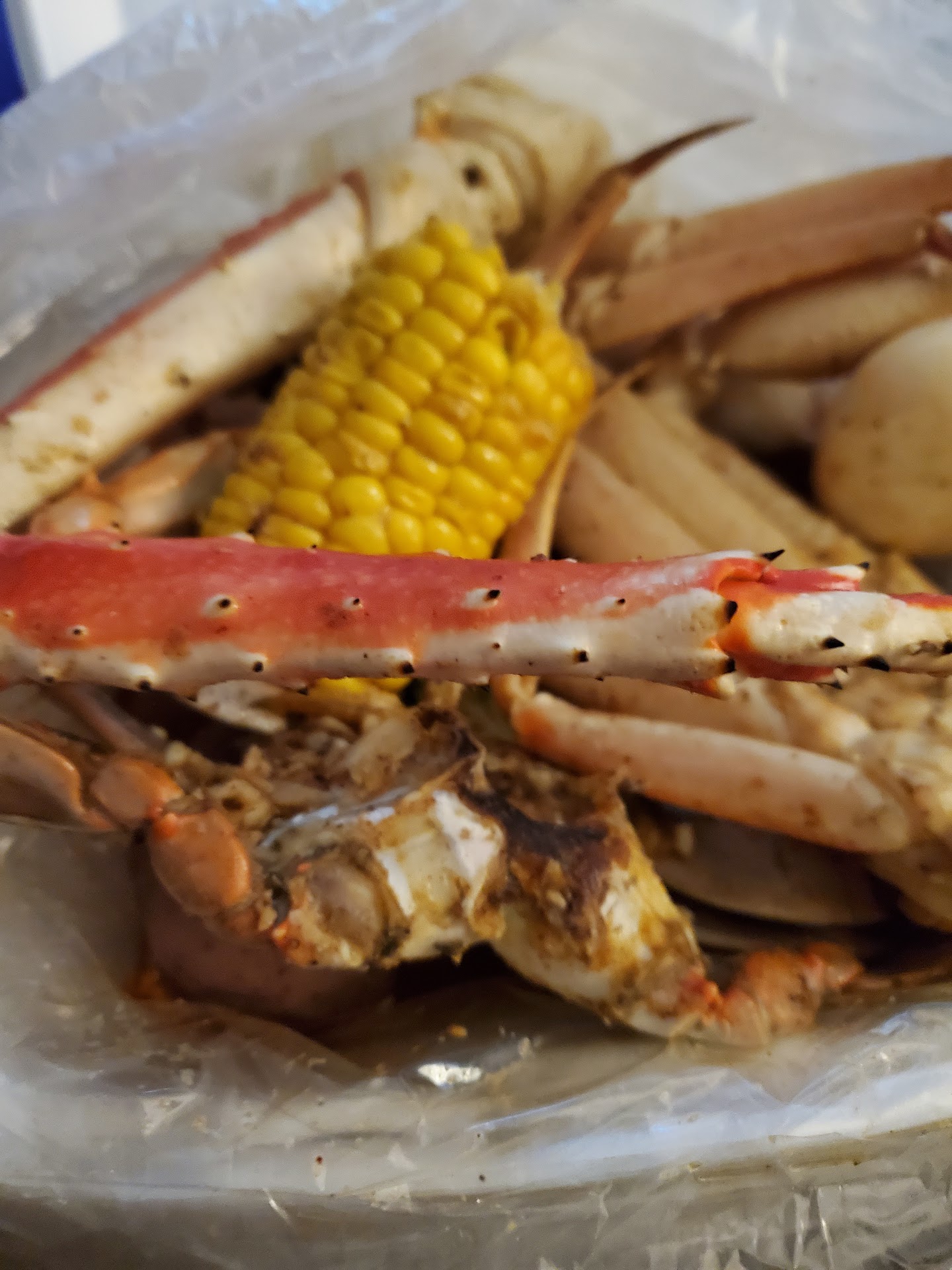 I ordered 2 Alaskan platters w/ shrimp. Came with corn potatoes and broccoli. I added eggs into it because I love eggs in my boil. I had the mixture of all sauces. Very very very good ... even though thereās no affiliation with āthe shakeā , I couldnāt tell a difference. I eat at the shake all the time. Crabs werenāt flimsy, they had a lot of meat and shrimps were huge. Broccoli was so good... The only thing I will say, they gave me eggs on the side. Normally when I order at the shake or hook & reel the eggs are in the bag soaking in all of the flavor. Yāall should put the Eggs in the bag with the seafood lol Iāll definitely...