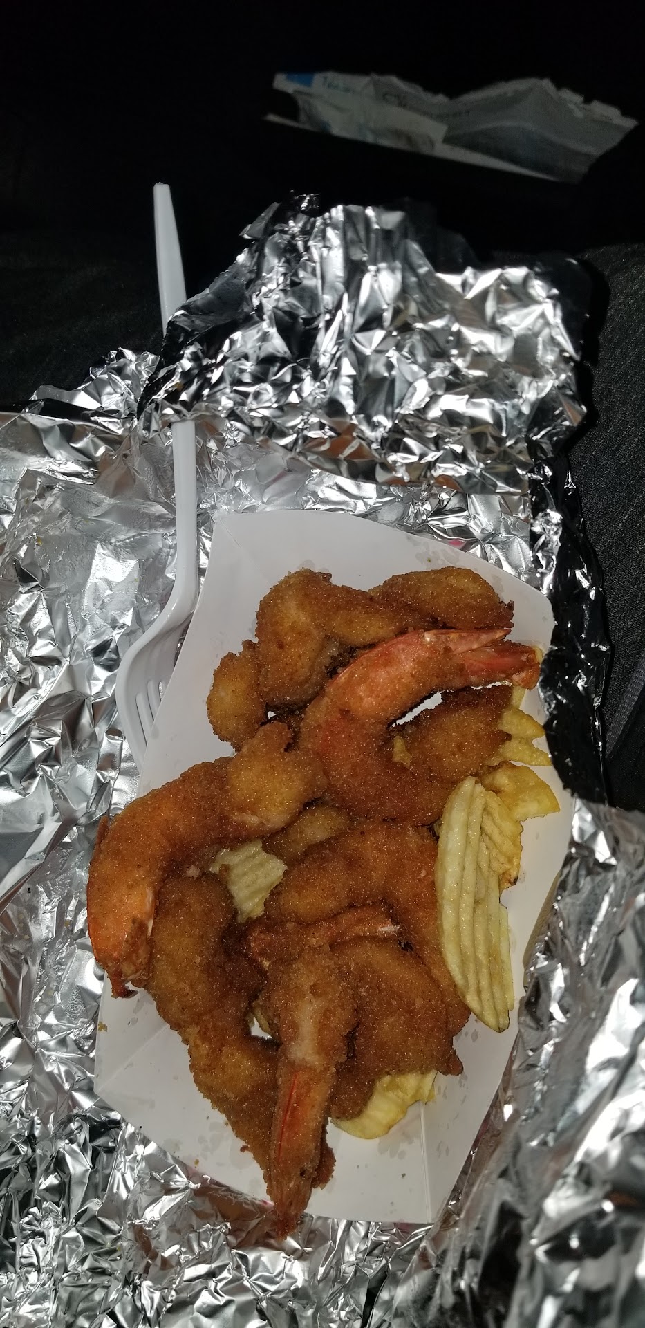 Read moreTossed with salt and pepper 😋 glad I tried this place cause been going back for awhile now. I really like the macaroni salad to *edit" thanks for taking time to reply. Funny last time I was there macaroni salad tasted little dif and wasn't as crazy about it. Assuming was an off day and they over cooked the noodles or something tho cause normally always good. Also I see people in other reviews talking about the chips, I have never ate them and always assumed they were just there to soak up any grease and make the shrimp better, which works well. I didn't think they were supposed to be part of the meal 🤔 maybe I'm wrong but it didn't seem like it lol. Also def not tiny shrimp. A dozen is always like 2 meals for me 😆 also would love if they had some kinda drinks like just cans of soda...