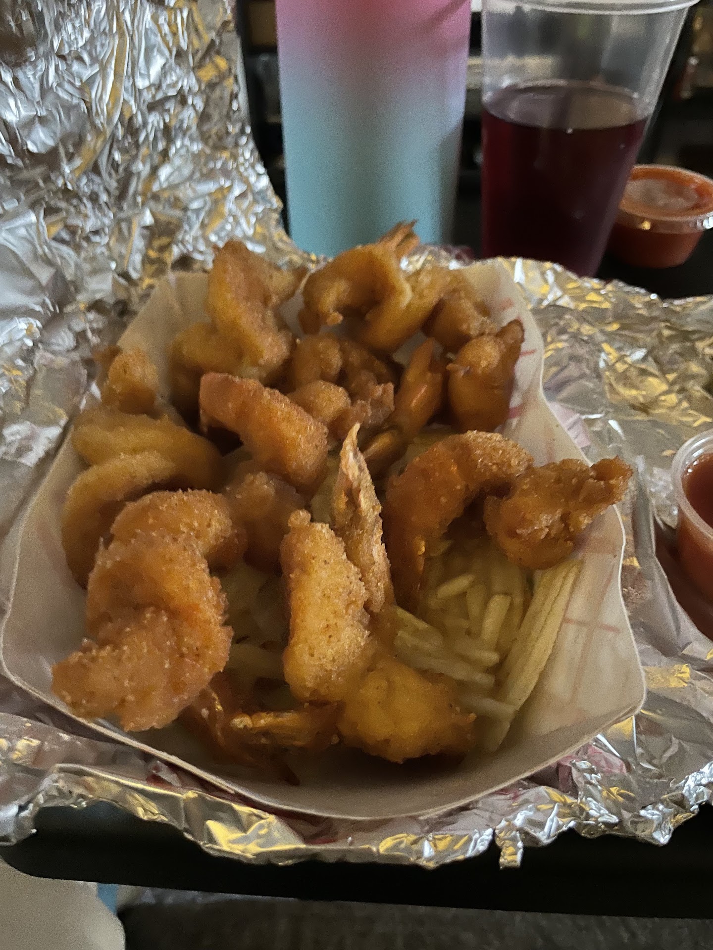I have been going here for YEARS in in my 40s and the shrimp has always been really good. I am sad to report they fell off. I literally went 4 times in a month and was told to stop going but I held on to blind faith and was disappointed every time. One day I asked for extra ketchup and idk if they was mad but my shrimp were drowning in ketchup and I couldn't eat them after buying a dozen (wasted $22), I had my children trying not to waste it they couldn't eat it either. I asked for fries done well and they taste just like grease. I finally tried the coleslaw and it tastes like Acme coleslaw (not good). I hate writing this but it needs to be known. Rest well Mr. Booker 🙏🏾🦅🕊️ but they're letting the quality go down. I do love the new step addition to the front and hope they add a railing...the older people could really use that! I will wait a while and return maybe they'll read this and fix what ever the problem is. Yesterday I was second in line for opening, I've went in the afternoon and late night as well. Figured maybe it was the cook though it's not hard to fry shrimp 🤦🏾♀️ I also asked for one cocktail sauce and was sold 2. The girl at the window wasn't paying attention because when I walked up she was trying to buy socks off of a hustler and ignored me. I had to ask him to place my order (I think that's why they drowned my shrimp...I wasn't trying to be smart I just wanted service) personal business shouldn't come before...