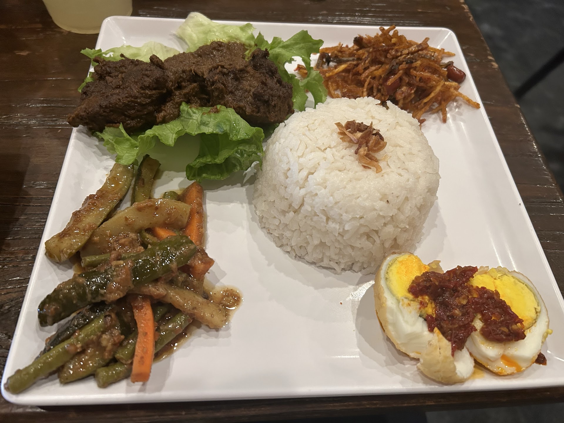 I think their Nasi Lemak Beef Rendang is pretty good but they need to slow cook their beef rather than the fast cook to get the flavors infused into their beef. Love the achar that comes with it and the fried sweet anchovies!