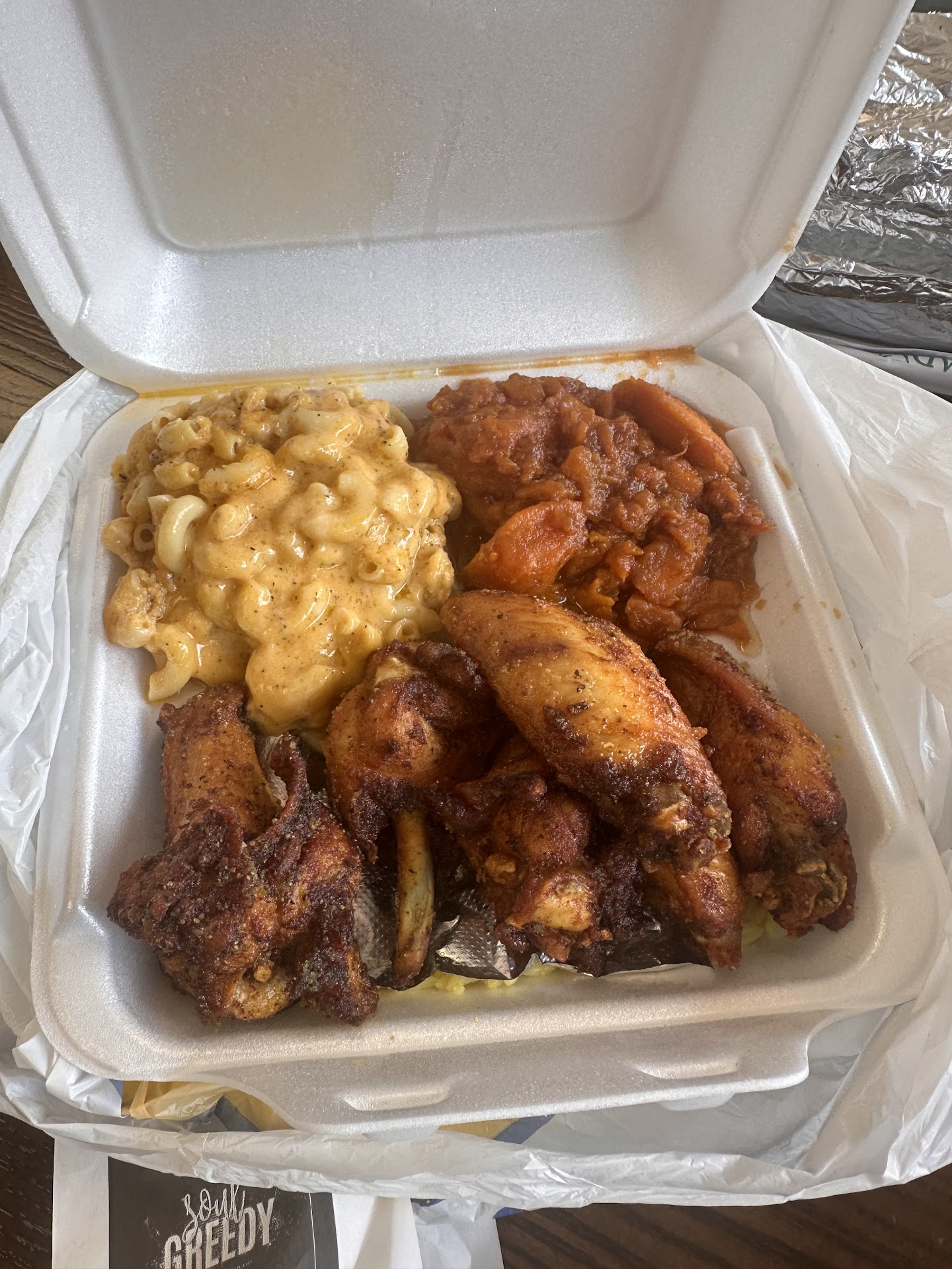 Read moreI recently had the pleasure of trying Greedy Soul Food Restaurant, and the meal was genuinely excellent. I ordered the smoked turkey wings, mac & cheese, yams, and collard greens mixed with cabbage. I have often been disappointed by other soul food spots in Philadelphia that seem to skimp on quality ingredients, particularly in their mac & cheese, but this restaurant was a delightful surprise. The mac & cheese deserves special mention. Making great mac & cheese requires a commitment to quality cheeses, and unfortunately, many restaurants cut corners by using insufficient cheese or cheaper substitutes like Velveeta, which just lacks flavor. Greedy Soul Food, however, deliver flavorful and cheesy mac&chesse. You could distinctly taste a sharp cheese, the texture was perfect, and it was seasoned to absolute perfection. The rest of the meal was equally fantastic: the turkey wings were cooked perfectly with great smoky flavor, and both the greens and the yams were a 10 out of 10. The service was also wonderfulâthe young lady who took my order both over the phone and in person had a great, lively, and bubbly personality. The only negative feedback I have is regarding the ambiance; the dining area felt quite stale and very uninviting. I would never dine-in based on this reason. Overall, I rate this place highly. If you are simply getting takeout, this is one of the best soul food experiences I have had in a long time. As a Philadelphia native who cooks well, I know good soul food, and this...