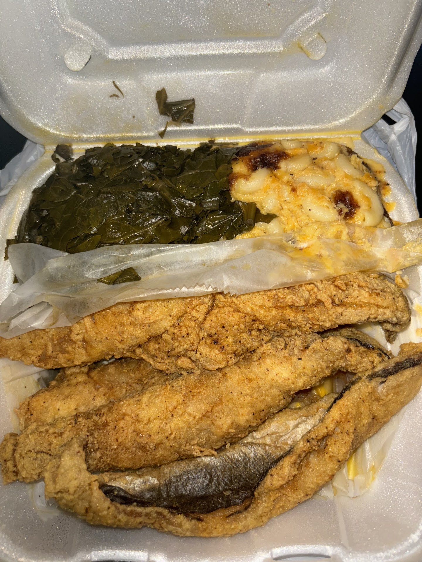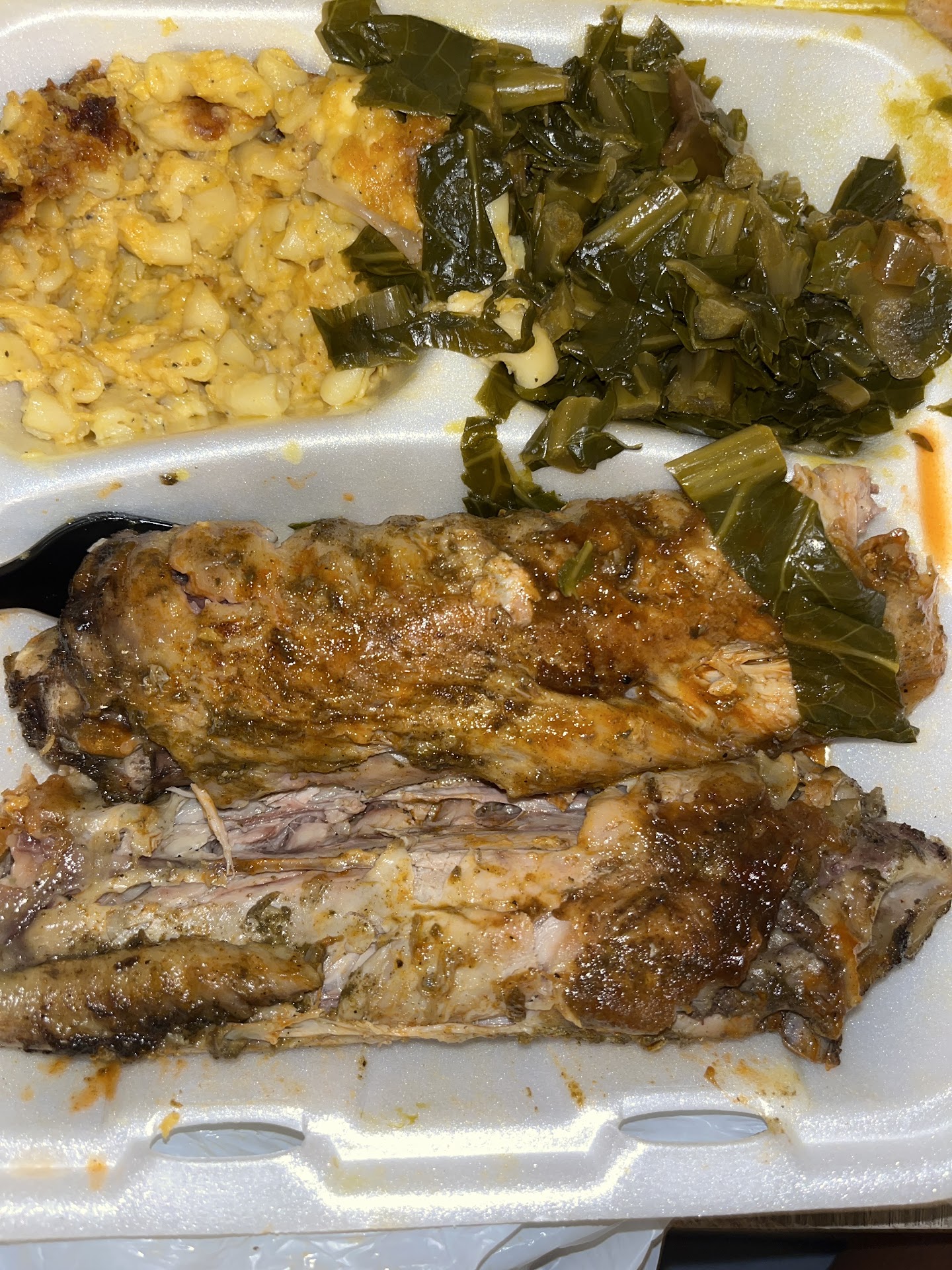 Read moreI ordered Mac and cheese, yam, whitings, collard greens, rice over gravy and mussels. 3 stars because They had Really great service , the lady in the front was very sweet…the corn bread was probably one of best ! I’ve had , no exaggeration & it was the Best thing i had ordering here .The greens were good and i really liked the yams . I’ll say that much. the Mac definitely could’ve been better ! It was edible ! but not the greatest… but w the yams it wasn’t half bad… Flavors are there …just needs improvement as far as the texture /cheese and the fish was a bit dry..could've definitely used some more seasoning or some lemon Would’ve been cute to add. the rice & gravy wasn’t terrible ..just tasted like regular boxed Goya rice soo that was okay lol. Overall i would love to see them go far & make lil improvements cuz it wasn’t all bad and food def has potential to be even better .corn bread is definitely a winner tho! Definitely try them out tho..oh and they had...