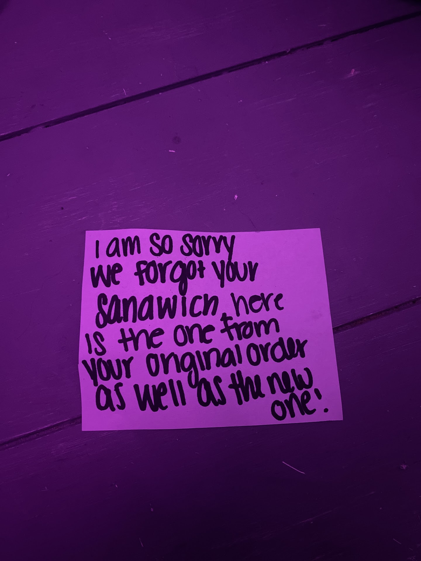 Read moreI ordered 2 drinks and a sandwich on ubereats. When I got my order I didn’t receive my sandwich so I got a refund and ordered a new one. When I got it I got 2 of the same sandwich and a super sweet note from Starbucks apologizing! They were very helpful on the phone and went above and beyond when they...
