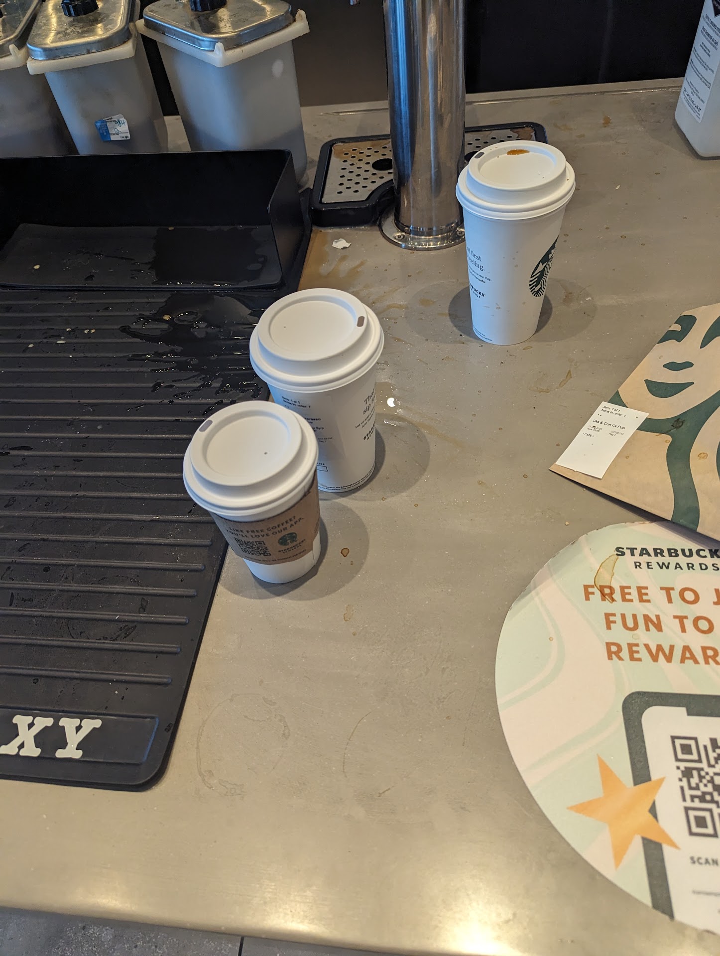 And in waiting for my drinks, it was amusing to watch one barista let her friends distract her, be obnoxious, and get their drinks made because they stopped her from helping make everyone else’s orders. I might be off my mark, they may have been staff on break or waiting for their shift to start. If that’s the case, it just seems like a poor representation of the business itself.