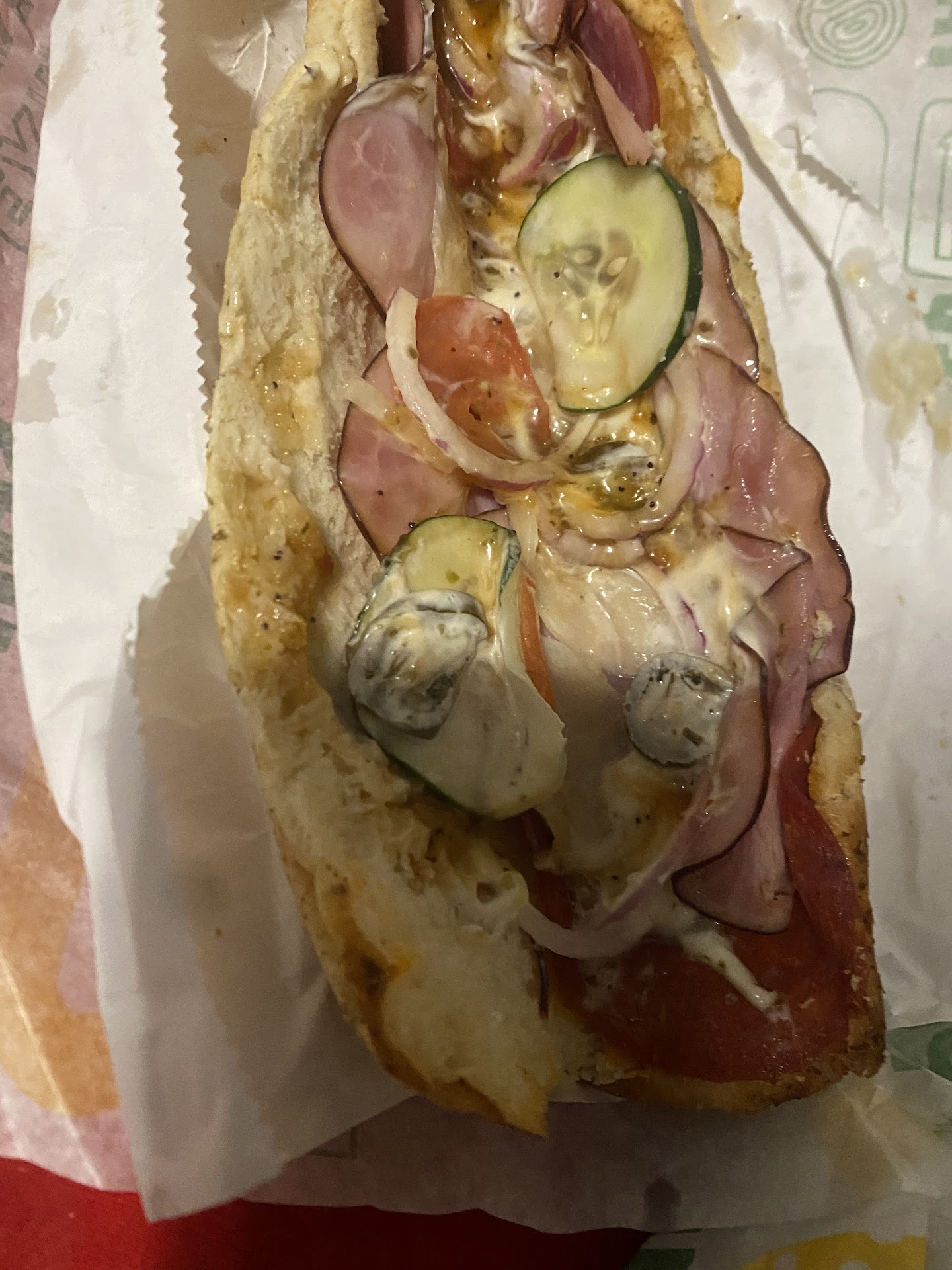 MY FOOD WAS PICKED UP @1:13 am THIS MORNING 6/25/25 & DIDN’T RECEIVE IT UNTIL 1:59am. NORMALLY, THIS MIGHT BE OK BUT IT WAS 100 degrees OUT & MY ARRIVAL TIME WAS 1:23 am as I LOVE ABOUT 7 mins AWAY!!! NO ONE WAS ANSWERING AT SUBWAY AS I WAS TRYING TO CANCEL!!! DIDN’T WANT ‘HOT COLD CUTS & CHEESE w/MAYO on THE SANDWICH!!!… I CALLED 100 times, CALLED MY DRIVER WHICH HAD HIM AT ONE LOCATION FOR OVER 1/2 WITH HIM NOT ANSWERING MY CALLS OR TEXT!!! WHEN I TEXTED HIM THT I WAS ON THE PHONE WITH DD, HE TEXTS ME THT ‘HE WAS IN AN ACCIDENT!!!’.. SUBWAY STILL NOT ANSWERING AS I DIDN’T WANT THE FOOD WHICH I’M SURE WAS DAMAGED BY NOW!!!… 4 mins LATER, MY FOOD CAME & HE LEFT IT ACCORDING TO MY INSTRUCTIONS WHICH WERE 47 MINS LATER & LOOK HOW THE SANDWICHES LOOK BELOW!!!… A HOT FUKN MESS & I WANT MY MONEY BACK BUT THEY WILL NOT ANSWER.....