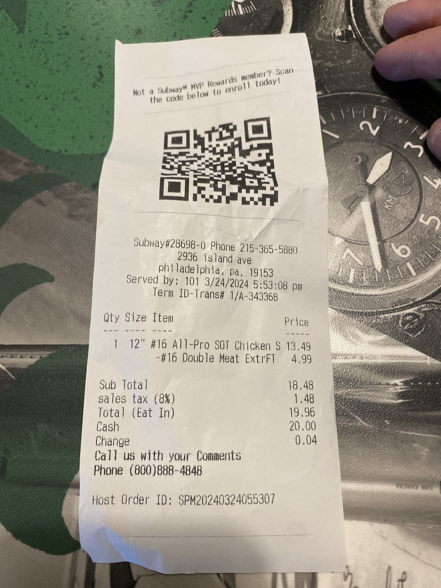 Read moreThis is an updated review: the new sandwich you see cost a whopping $17. With no extra meat. The problem is repeat business, I’ll never come back to any subway if these are the prices, and this is the quantity. You can speak any language you want… in addition to the English that the vast majority of your clientele speak. Zero smiles. Zero questions. It was a point and hope situation. I was just given a type of bread and cheese I didn’t ask. When I tried to change it, the language barrier didn’t make it possible. $5 for 9% meat is an utter rip off. This is ONE OF THE WORST SUBWAYS...