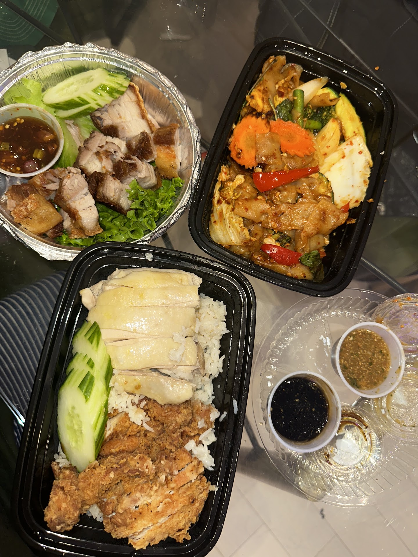 Such an underrated place definitely my new takeout spot! I ordered delivery from their website and everything came so quick and was packaged nicely, my thai tea didn’t spill at all , was still cold and w good milk ratio. I got the veggie drunken noodle, crispy pork belly, and the chicken w rice; everything tasted amazing, the meat was tender and tasted like a true home cooked meal and the side sauces are such good compliments to the dishes. FYI The drunken noodle has different spice levels you can choose and I can take spice so I picked spicy and it was def true to word and had a strong kick so just keep that in mind...