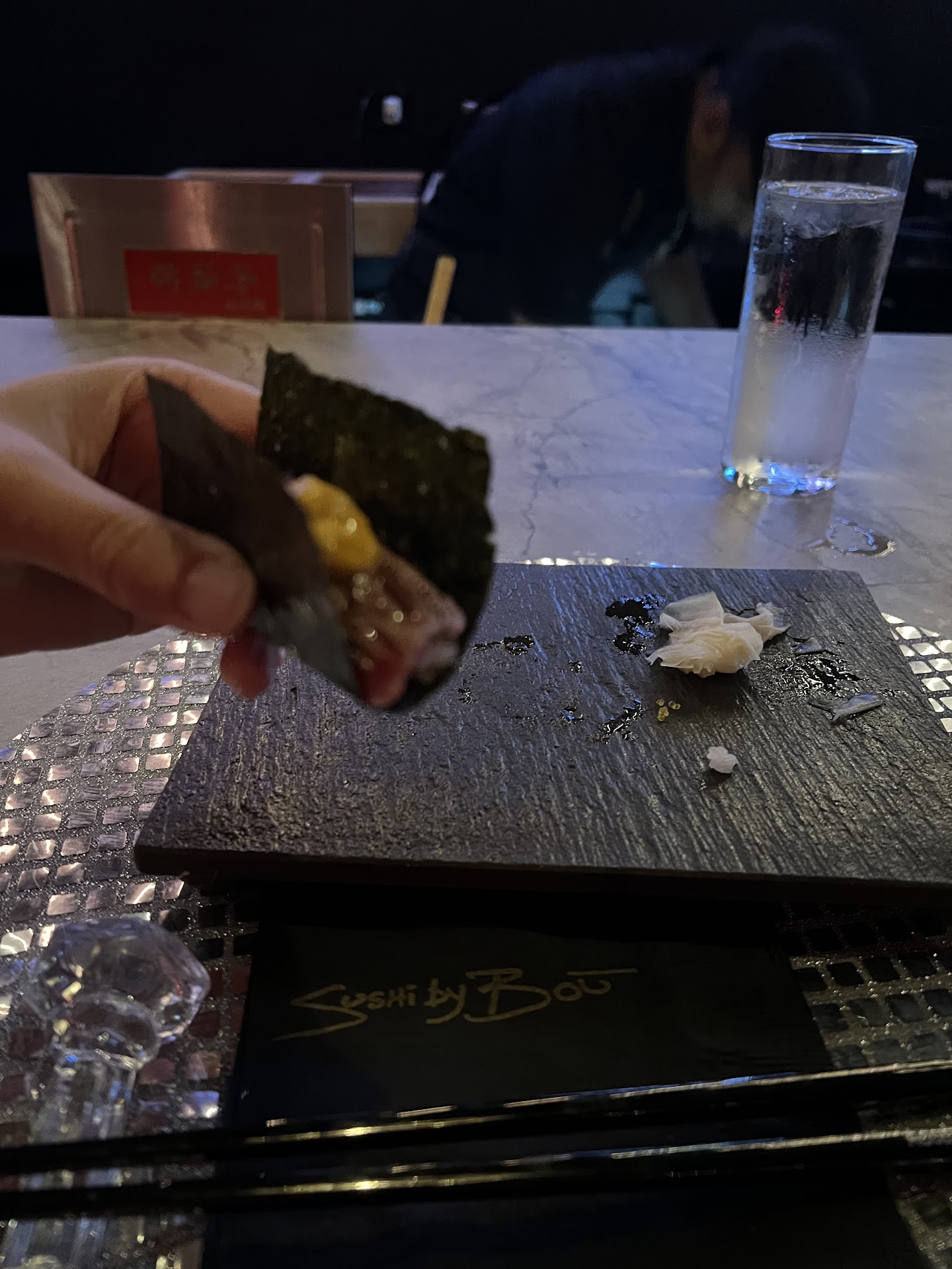 The ala carte choices sounded good like the Big Mac and guess I should have tried but was ready to leave lol. Small space with the one small lounge space we sat at for minute before being sat. It’s worth maybe doing the 12 course and maybe adding on ala carte, nice staff but I’d rather check out the other omakase spots or just get regular sushi orders that I...