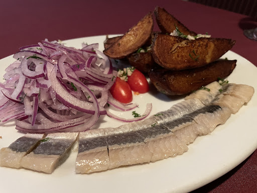 Given that this was our first time at an Uzbeki eatery, we asked our server for some suggestions. Upon doing so, she then asked us if we prefer meat or fish. After perusing the menu a bit more and taking her suggestions into consideration, we had decided to order a wide array of sorts, opting for the pickled herring and potato appetizer, some Tandoori Samsas, a bowl of the Kharcho soup, and an order of the Guyru Dumplings.