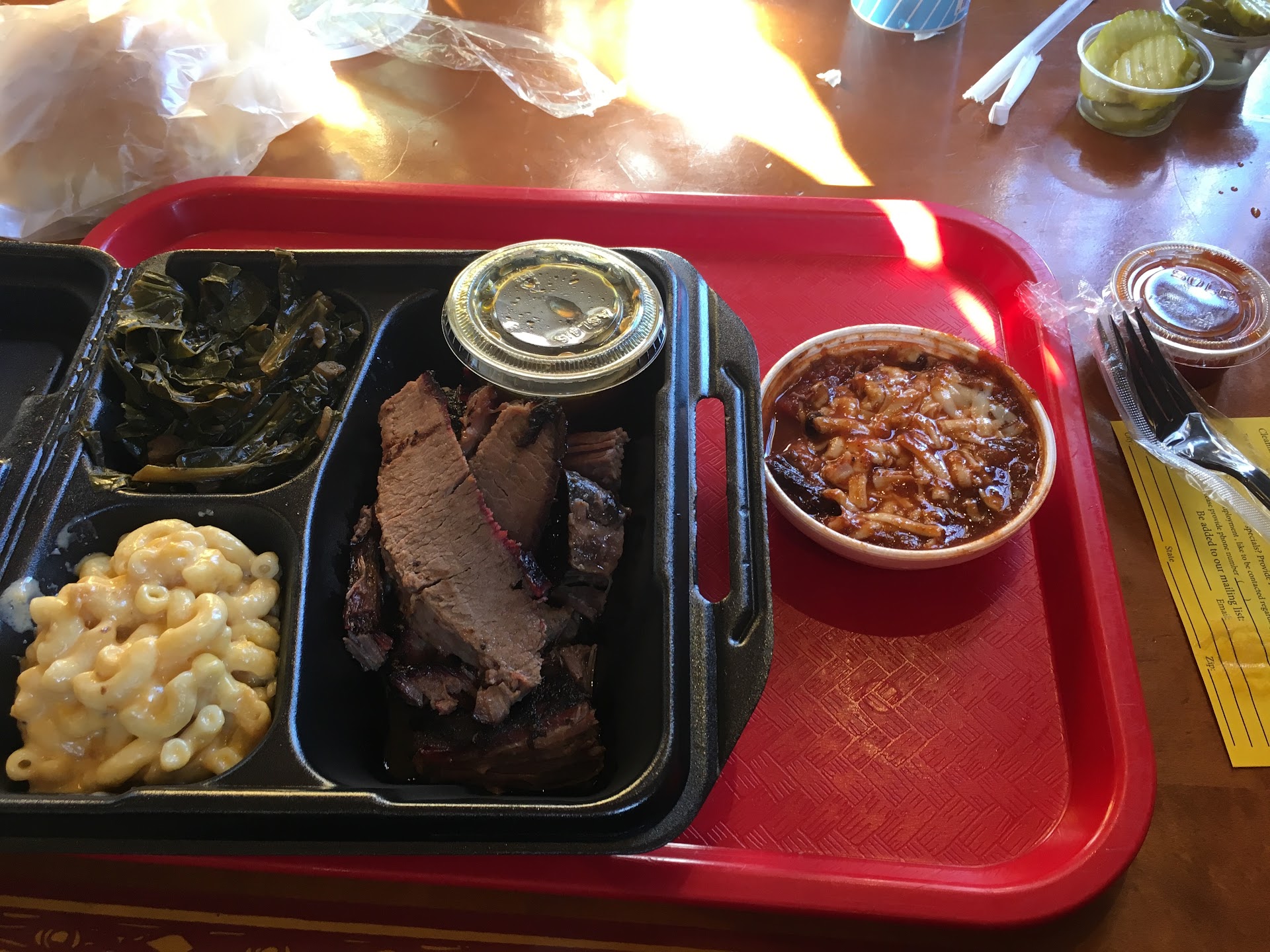 I used to go here quite frequent until my husband and I came one day for lunch and my husband commented that the kielbasa was horrible. I thought he was exaggerating, but sure enough, I tasted his platter and it was the weirdest flavor ever, and completely different from their usual stuff. He inquired with the kitchen and sure enough, they stated that yes they did switch suppliers, and he was not the first one to complain. After this experience, we havenât been back much...just here and there. Fast forward to last weekend, when I took my daughter for lunch. She was excited to go since she hasnât had it in a long time. The only thing she ordered was a giant container of the macaroni and cheese, because she loves it. I ordered a platter with brisket, and sides of macaroni and cheese spicy, collard greens, and chili. My food was very good, and overall I was pleased. However, even though my daughter found the macaroni and cheese delicious, I did not. I used to love it, but now it has a completely different taste. It was a little on the runny side. I know before it used to have French fried onions mixed in with it. I didnât see any of that but it did have a weird oniony aftertaste that was not pleasant. The collard greens were great, the chili wasnât bad...and the brisket was good.