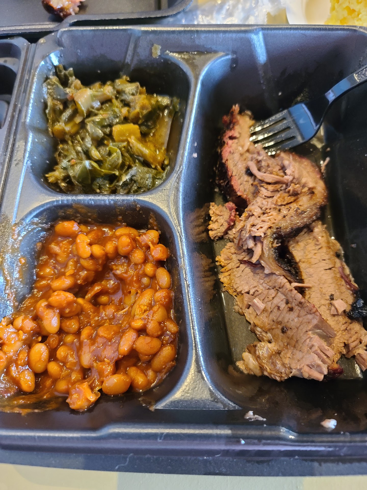 I used to go here quite frequent until my husband and I came one day for lunch and my husband commented that the kielbasa was horrible. I thought he was exaggerating, but sure enough, I tasted his platter and it was the weirdest flavor ever, and completely different from their usual stuff. He inquired with the kitchen and sure enough, they stated that yes they did switch suppliers, and he was not the first one to complain. After this experience, we haven’t been back much...just here and there. Fast forward to last weekend, when I took my daughter for lunch. She was excited to go since she hasn’t had it in a long time. The only thing she ordered was a giant container of the macaroni and cheese, because she loves it. I ordered a platter with brisket, and sides of macaroni and cheese spicy, collard greens, and chili. My food was very good, and overall I was pleased. However, even though my daughter found the macaroni and cheese delicious, I did not. I used to love it, but now it has a completely different taste. It was a little on the runny side. I know before it used to have French fried onions mixed in with it. I didn’t see any of that but it did have a weird oniony aftertaste that was not pleasant. The collard greens were great, the chili wasn’t bad...and the brisket was good.