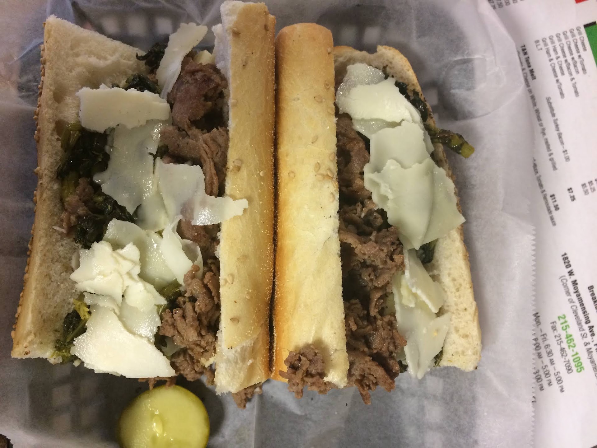 Oh my goodness what a cool little old school neighborhood greasy spoon complete with owner (I think it was the owner) telling corny jokes. Apparently this is the home base of the âJeetâ food truck. I was in South Philly so I got the cheese steak Italian, seeded roll, broccoli rabe and sharp provolone. According to my daughter, Karly I'm the only person in the world that didn't know sharp provolone had such a distinctive taste. I am still not sure if I'm a broccoli rabe fan but this broccoli rabe had a lot of flavor. Sorry but I could only give this cheesesteak a score of 89. It was full of flavor and I now completely understand how people can be happy sitting around eating a seeded roll and provolone cheese but it was $11 and it just needs to be bigger and the meat has to improve. Does broccoli rabe always have the more stalk than leafing parts? Very good overall experience and I wouldn't hesitate to go back...