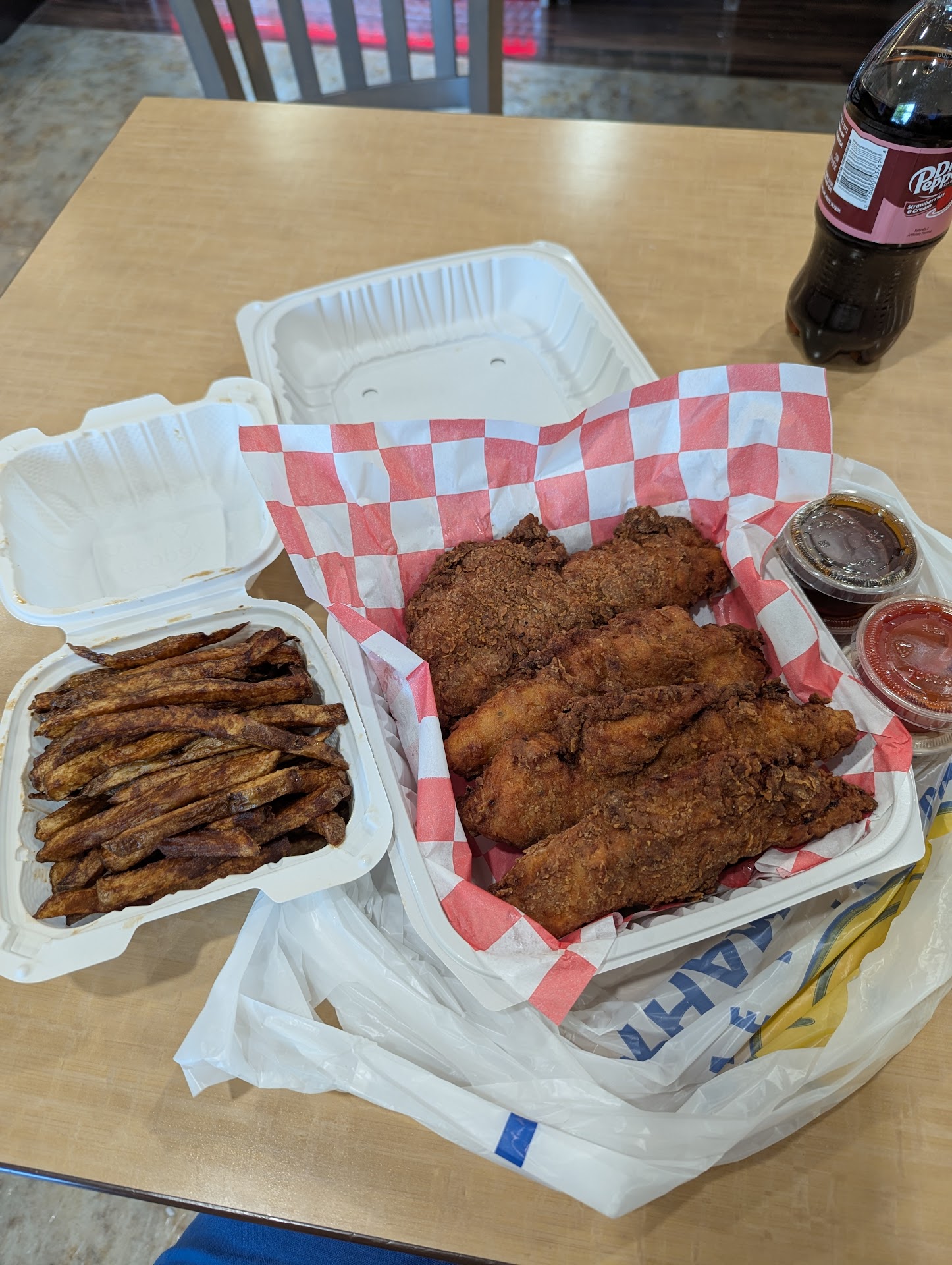 Ā Ā Ā Read moreI asked the guy if the chicken is worth the hype, he told me if its not perfect, to leave the worst 1 star review I could make. Here we are 5 stars later, the tenders were absolutely amazing. The price scared me a little before I got there but the portion size makes up for it 100%. Full boneless breasts, I got hot honey and chipotle maple. The maple tenders came covered in a dry rub as well as a house made chipotle maple sauce that was so unique and flavorful. I'm not a big hot honey fan but they do it so well and the flavor profile is something I've never had before. I'll be coming...