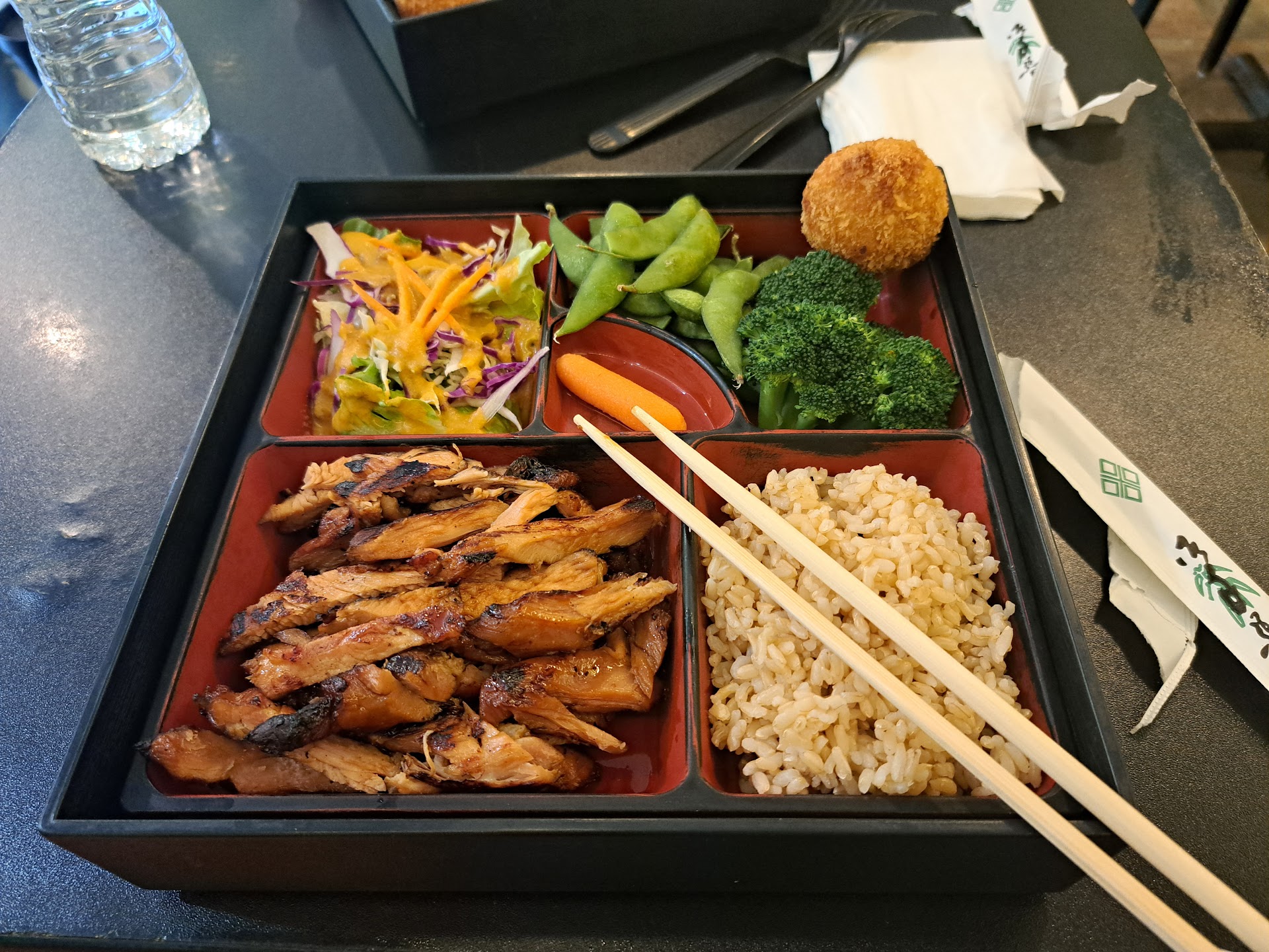 If there were more stars to give for this rating, I would give them. This restaurant is genuinely so good it's amazing. My mom and I got a pork and chicken bento box, and everything in the bos was so good! The pork tasted like the Korean BBQ style you'd find in Korea, while the chicken was very well marinated as well. The vegetables were so good, especially the edamame, and the fried potato ball tasted exactly like the one I had in Korea. The food is so filling, yet the portions aren't too much and aren't heavy. For the amount of food you're given, the price is pretty amazing as well. 1 chicken bento is pnly arpund $10 and for the amount of food you get, especially the amount of meat and the quality, its a steal! They also have aloe vera that I've personally seen in Korea, which is pretty cool and are very delicious. On top of that, the atmosphere is so relaxing and the decor is beautiful! There's calming, classical musical playing, and the walls are filled with pretty diamond art! The people who work there are also very nice! They're so kind, and the man at the cash register was very helpful and has a very relaxed demeanor. 15/10 would come again. Honestly, I think I'd eat here every...